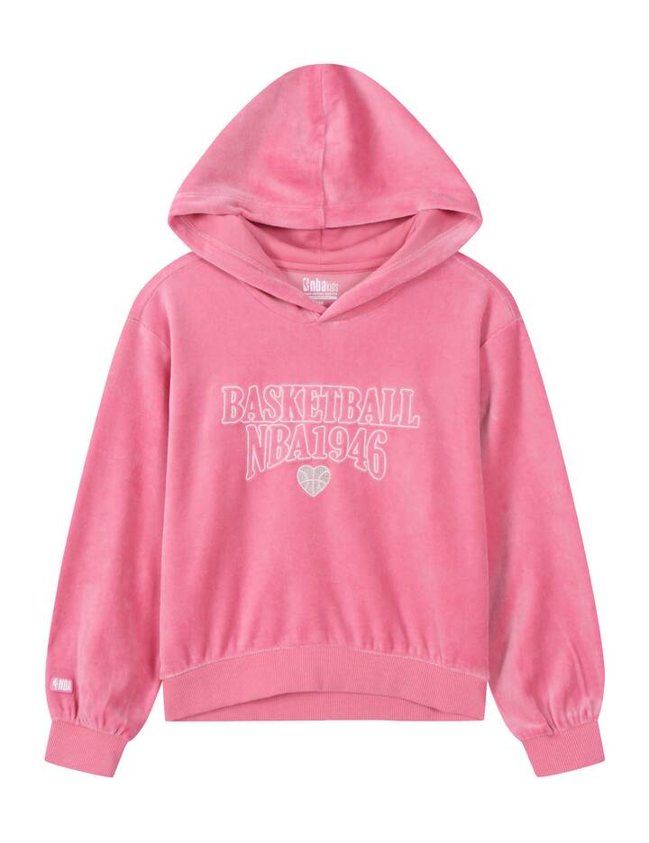 *부드러운 터치감의 벨로아 소재 여아 후드티셔츠