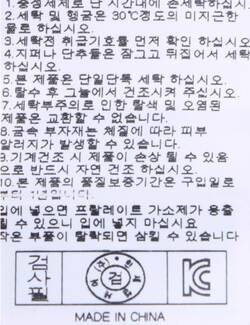 | 세탁방법 및 취급시 주의사항 | 본 제품은 손세탁 하십시오.(케어라벨참고) |