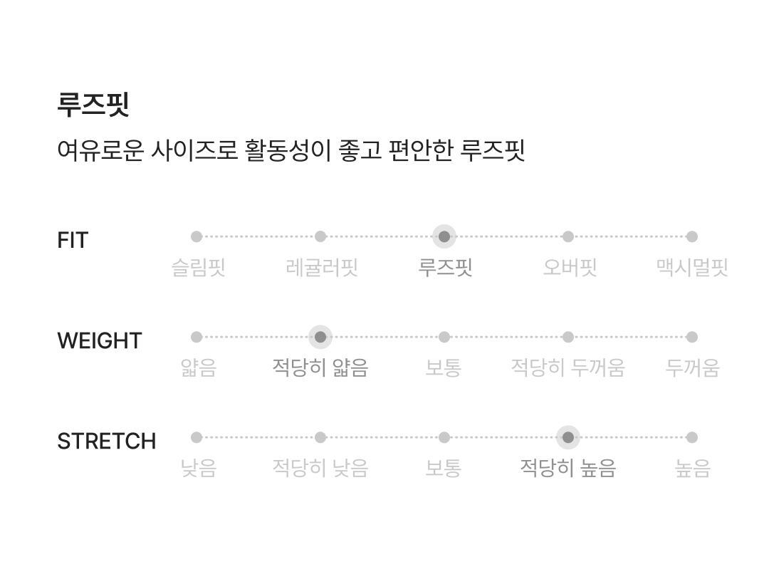* 데님팬츠로 캐주얼하게 코디하거나 우븐 팬츠들로 스포티함을 살려 코디하기 용이함