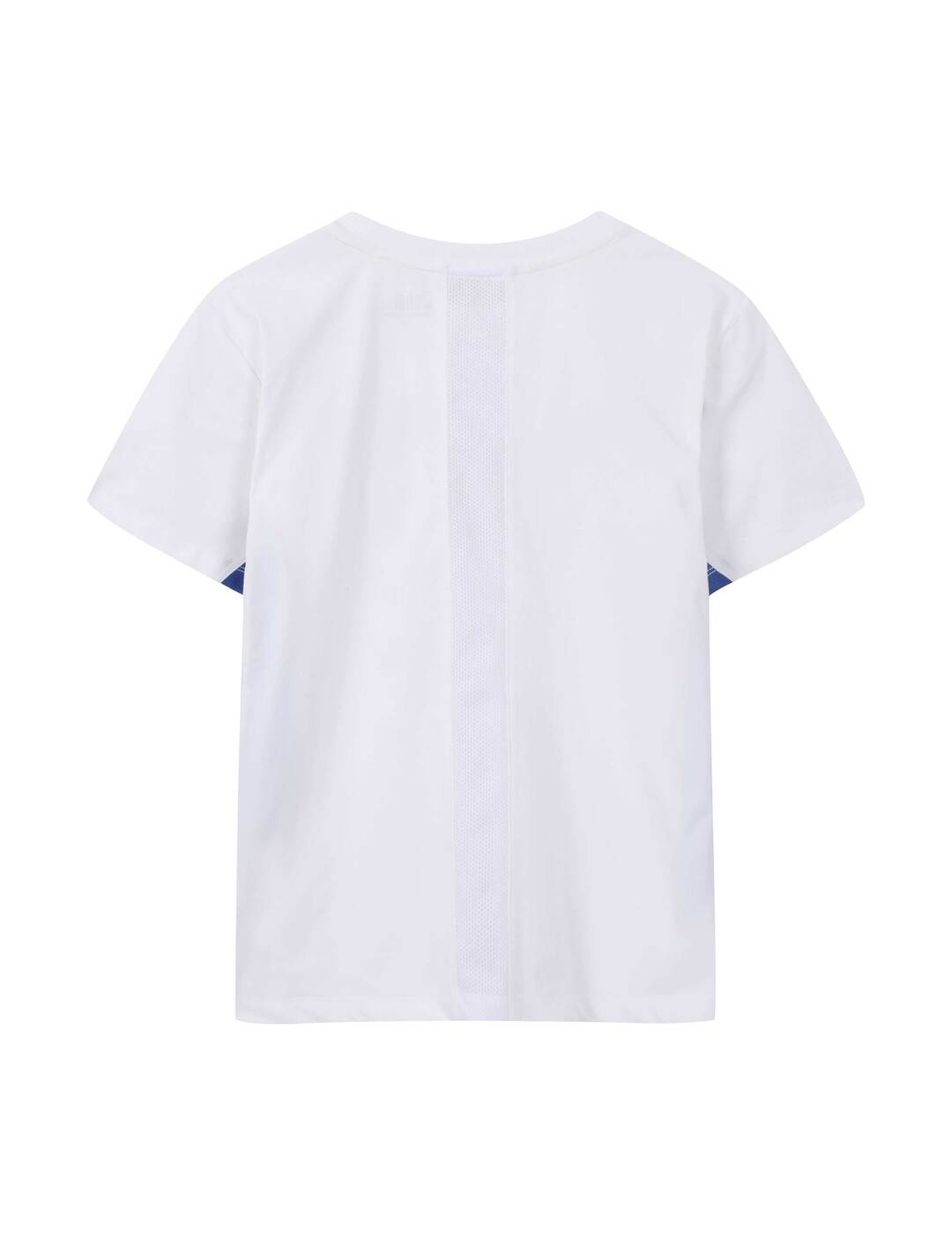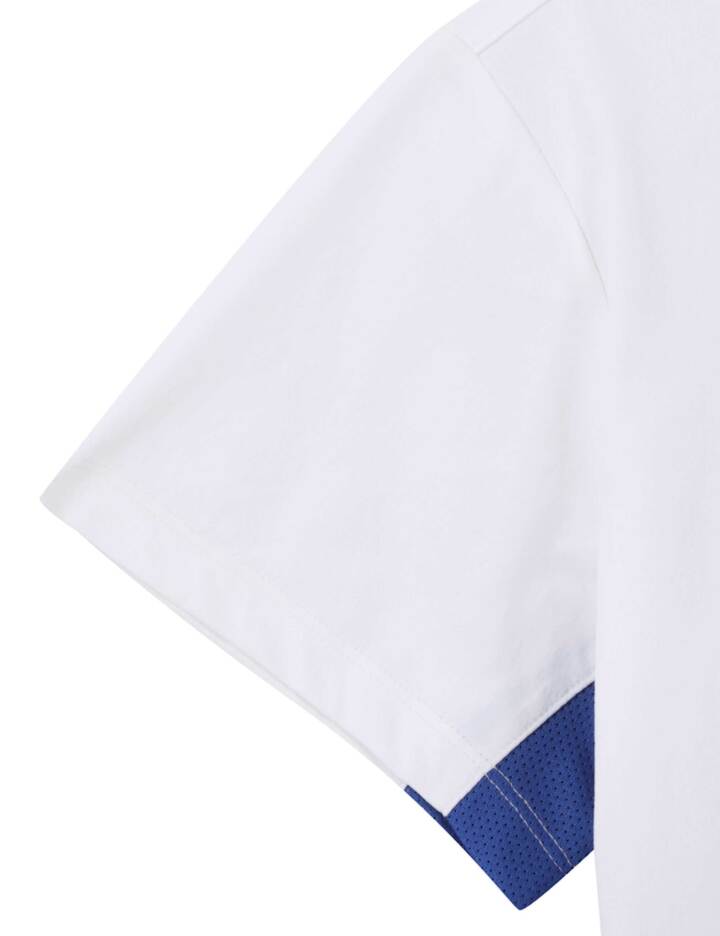 팀로고를 세로로 배치하여 스포티한 무드 연출 농구공 라인에서 모티브를 얻은 절개 라인 포인트 사이드와 등판에 통기성이 우수한 메쉬 소재 배색 적용 자연스럽게 어깨라인이 드롭된 넉넉한 오버핏 실루엣 주니어 초반까지 커버 가능한 120-160 사이즈 구성