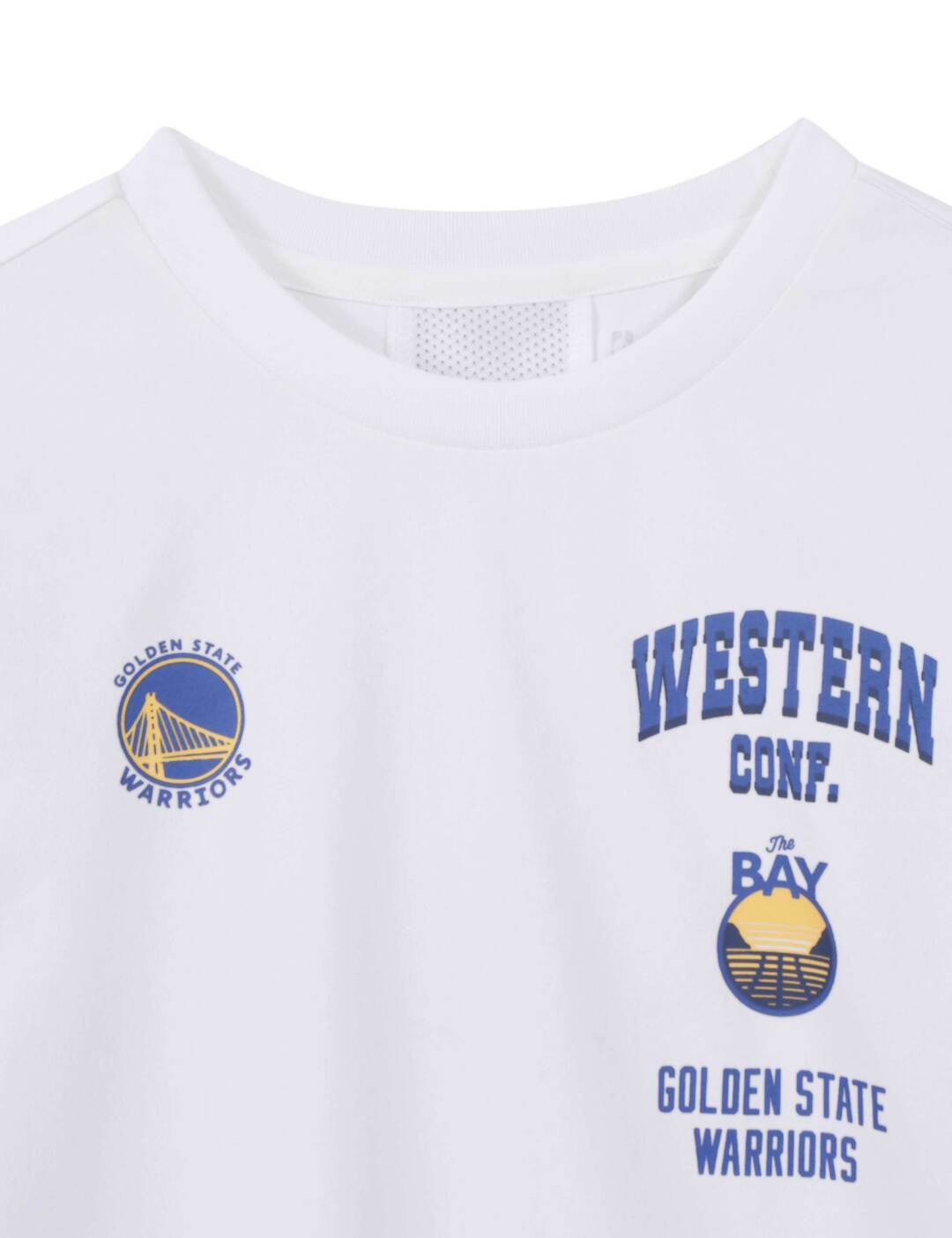 GSW 팀로고와 농구공 라인 디테일의 스포티한 반팔 티셔츠