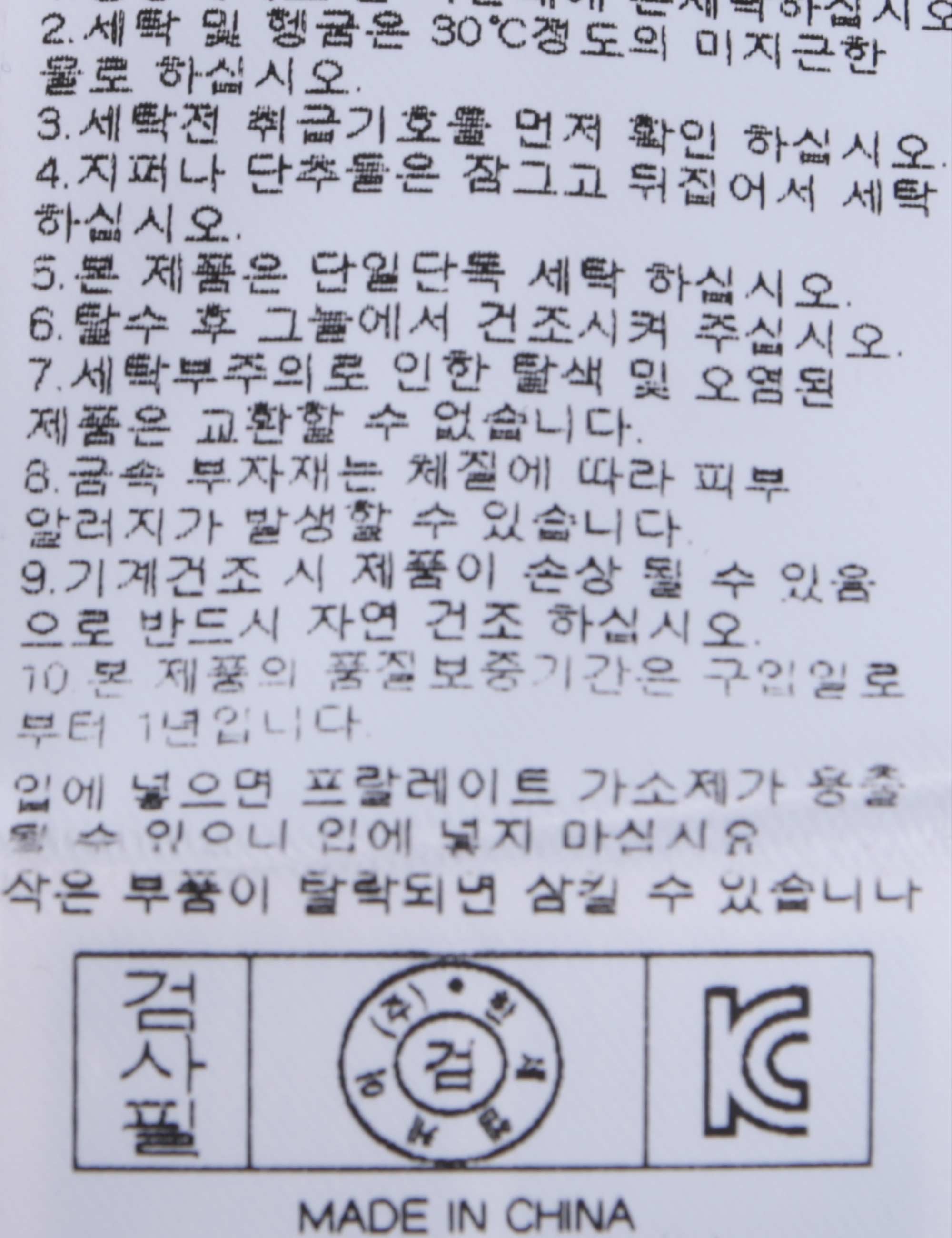 세탁방법 및 취급시 주의사항 본 제품은 손세탁 하십시오.(케어라벨참고)