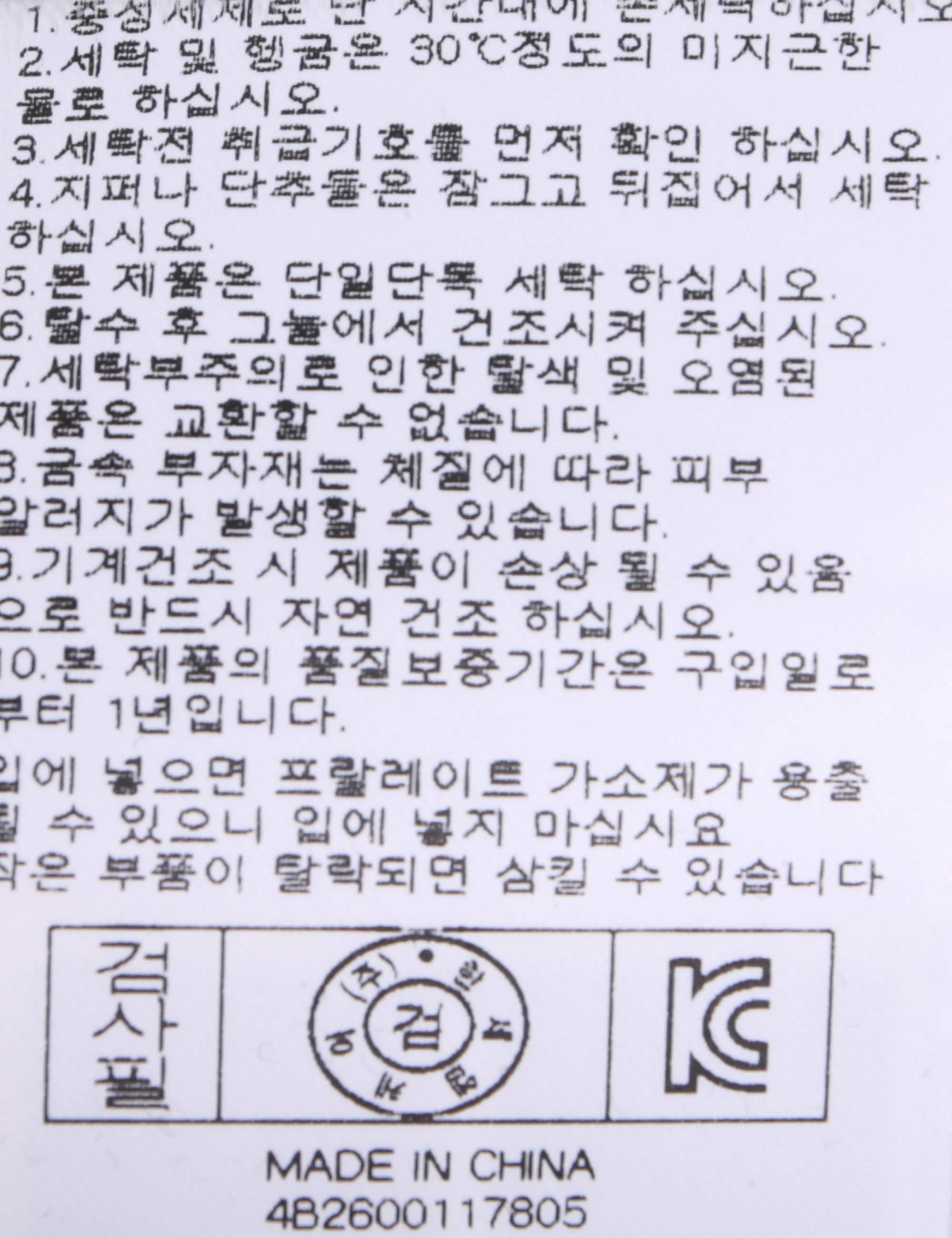 | 세탁방법 및 취급시 주의사항 | 본 제품은 손세탁 하십시오.(케어라벨참고) |
