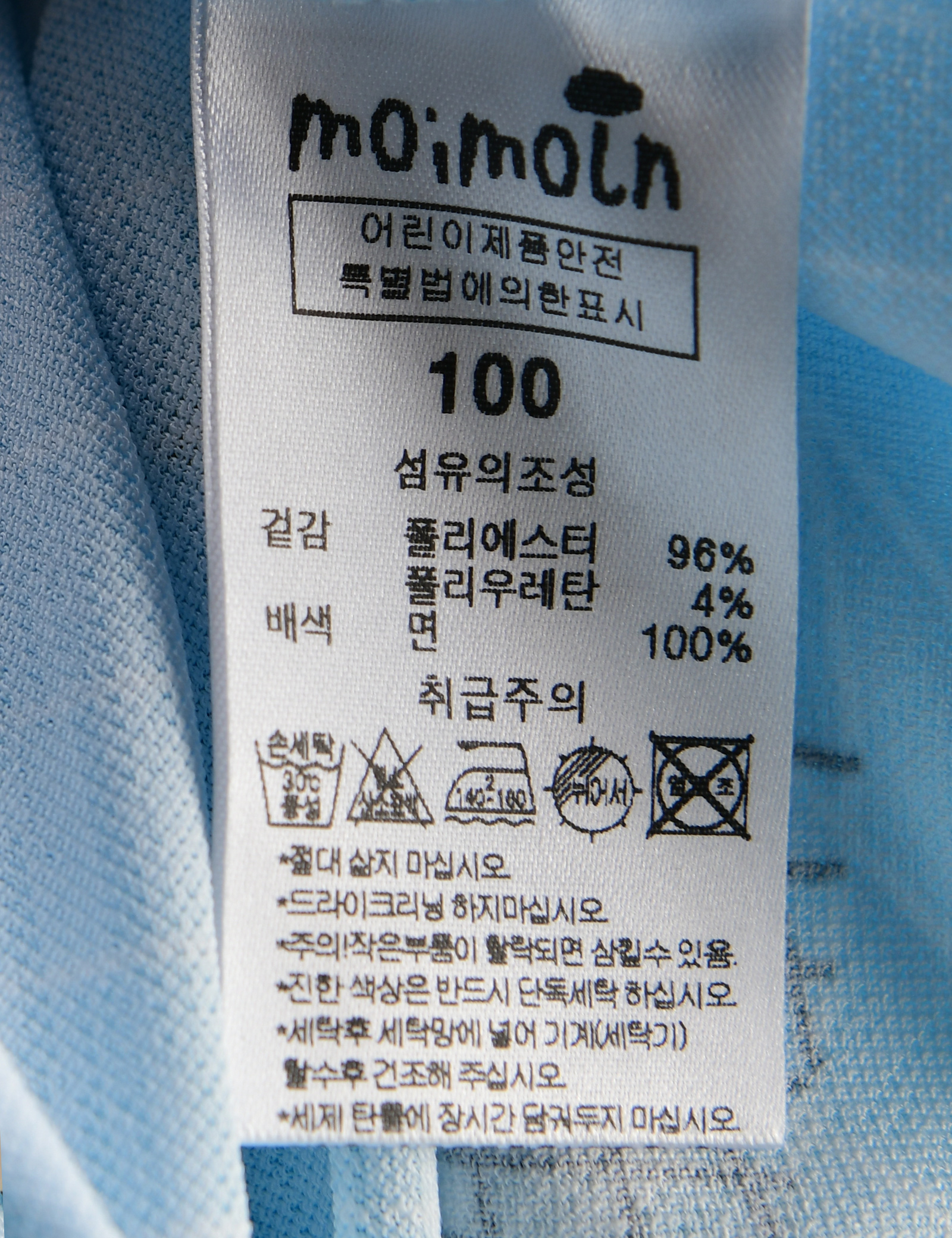 제품소재 (겉감)폴리에스터96%,폴리우레탄4%(배색)면100%