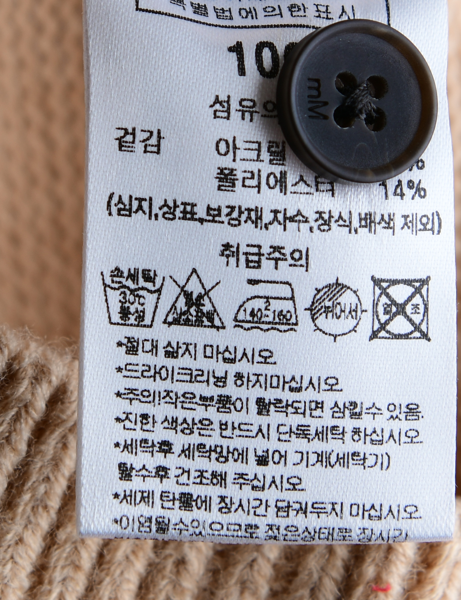 | 세탁방법 및 취급시 주의사항 | 본 세품은 손세탁 하십시오(케어라벨 참고) |