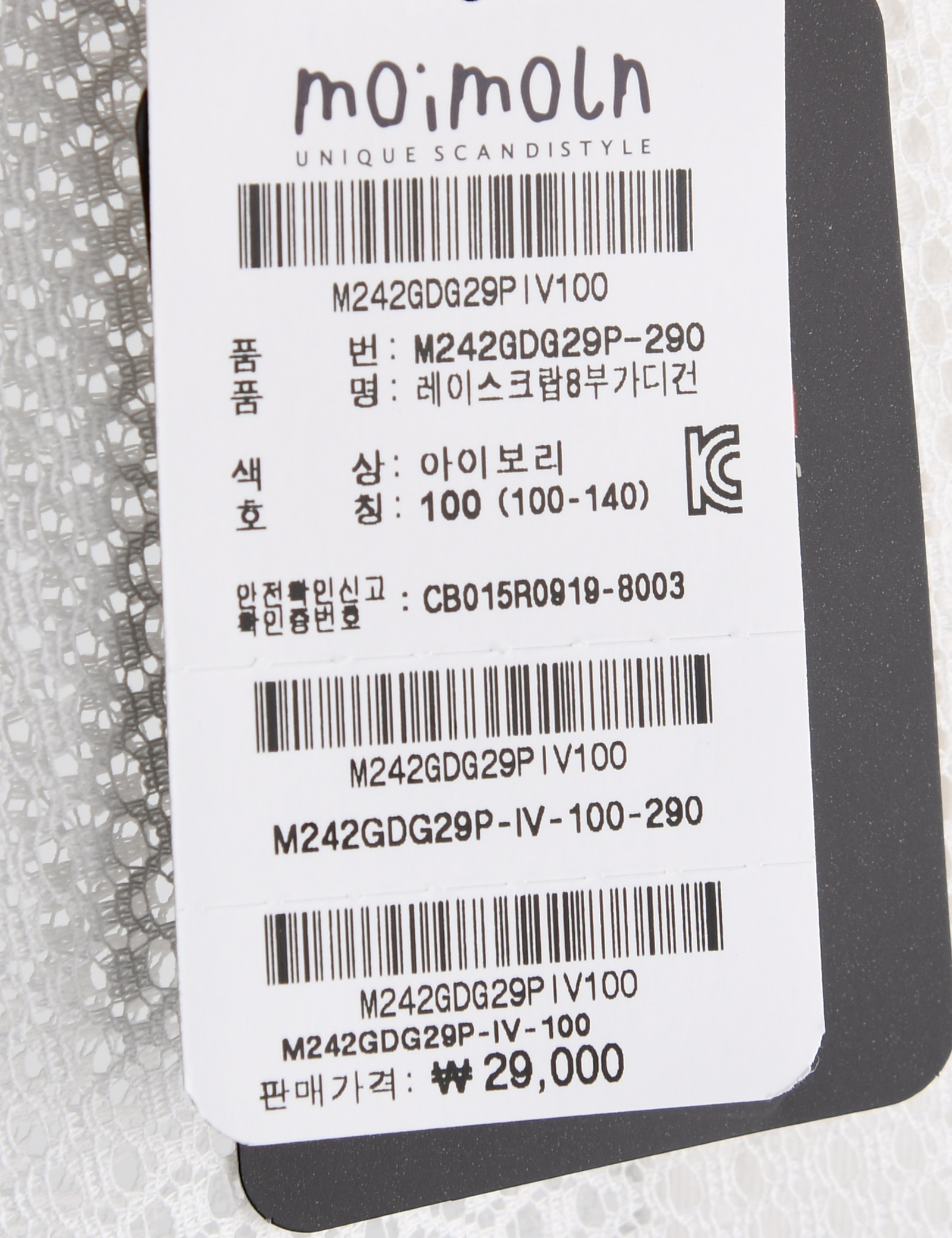 상품명 [모이몰른] 레이스크랍8부가디건 [여름]