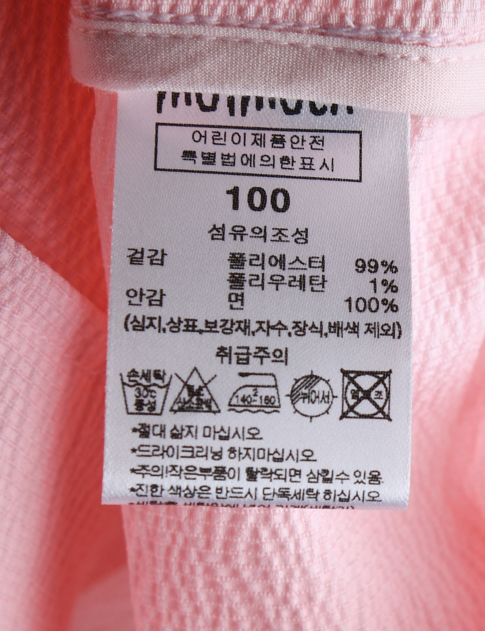제품소재 (겉감)폴리에스터99%,폴리우레탄1%(안감)면100%
