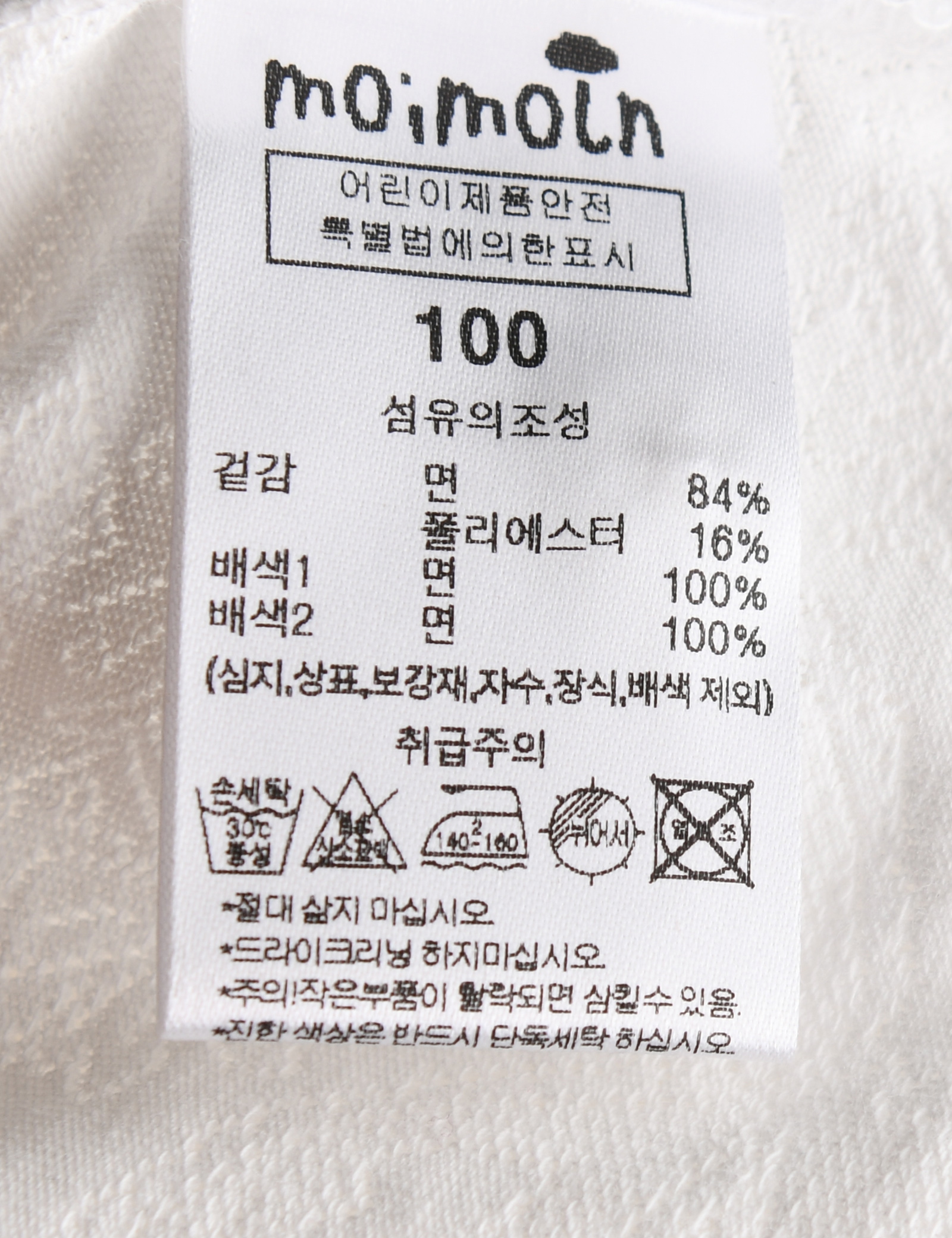 | 세탁방법 및 취급시 주의사항 | 본 세품은 손세탁 하십시오(케어라벨 참고) |