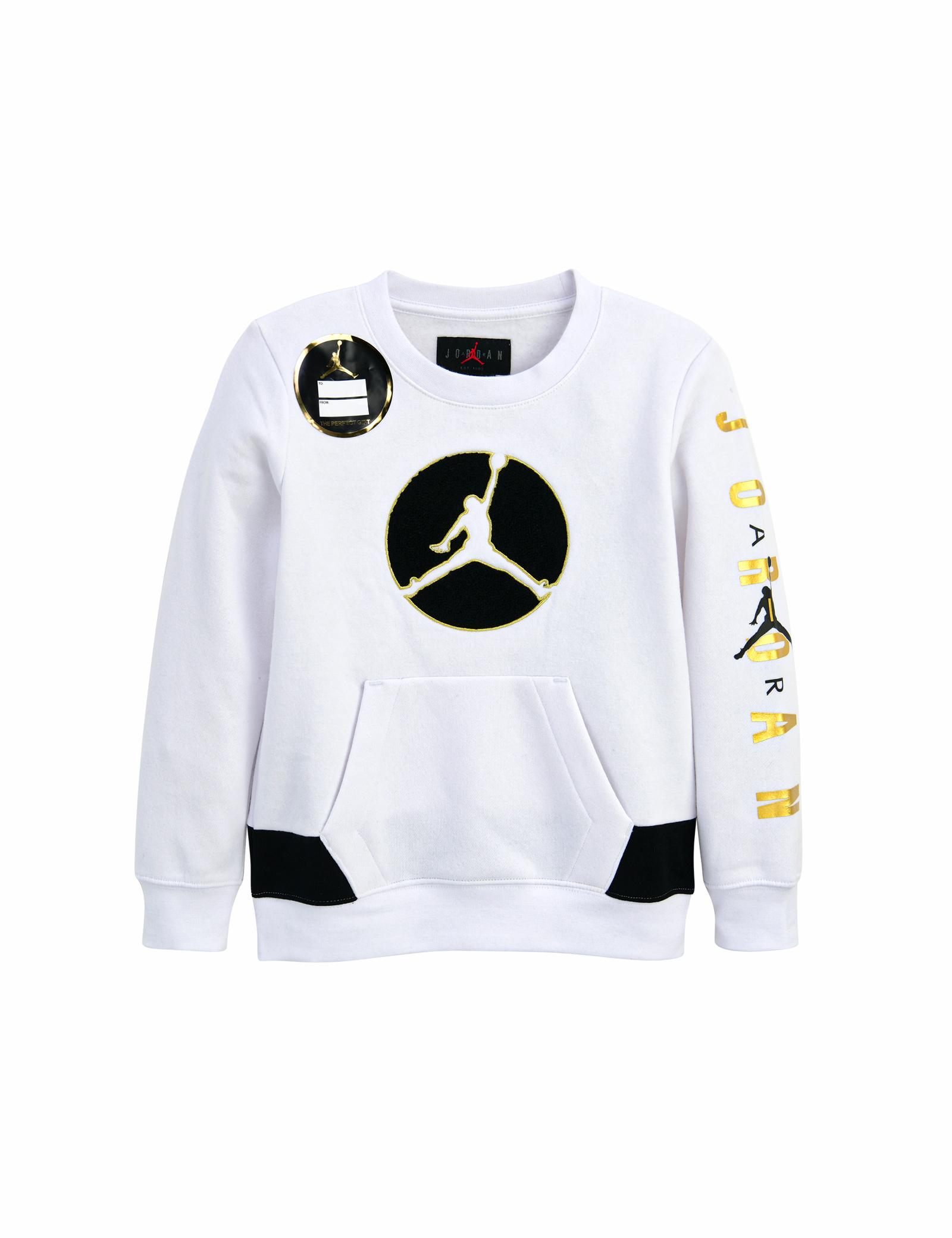 • 플리스소재의 맨투맨• 점프맨 로고와 팔의 레터링이포인트인 제품• 제품 하단의 화이트 컬러블럭으로 신선함 제공