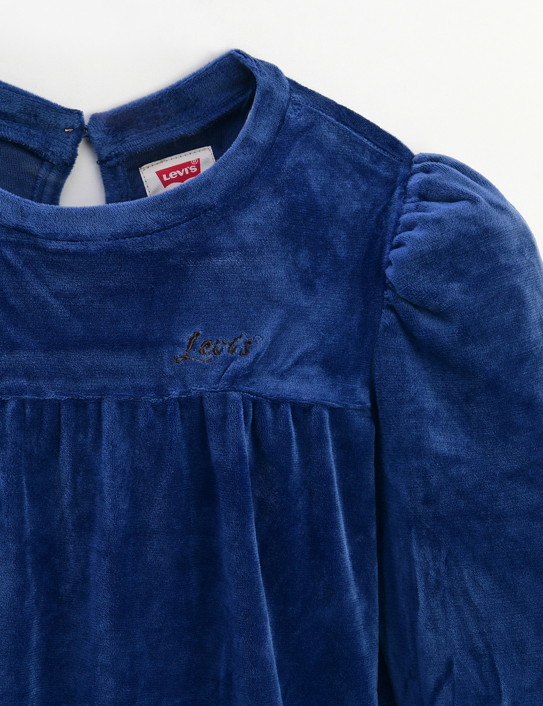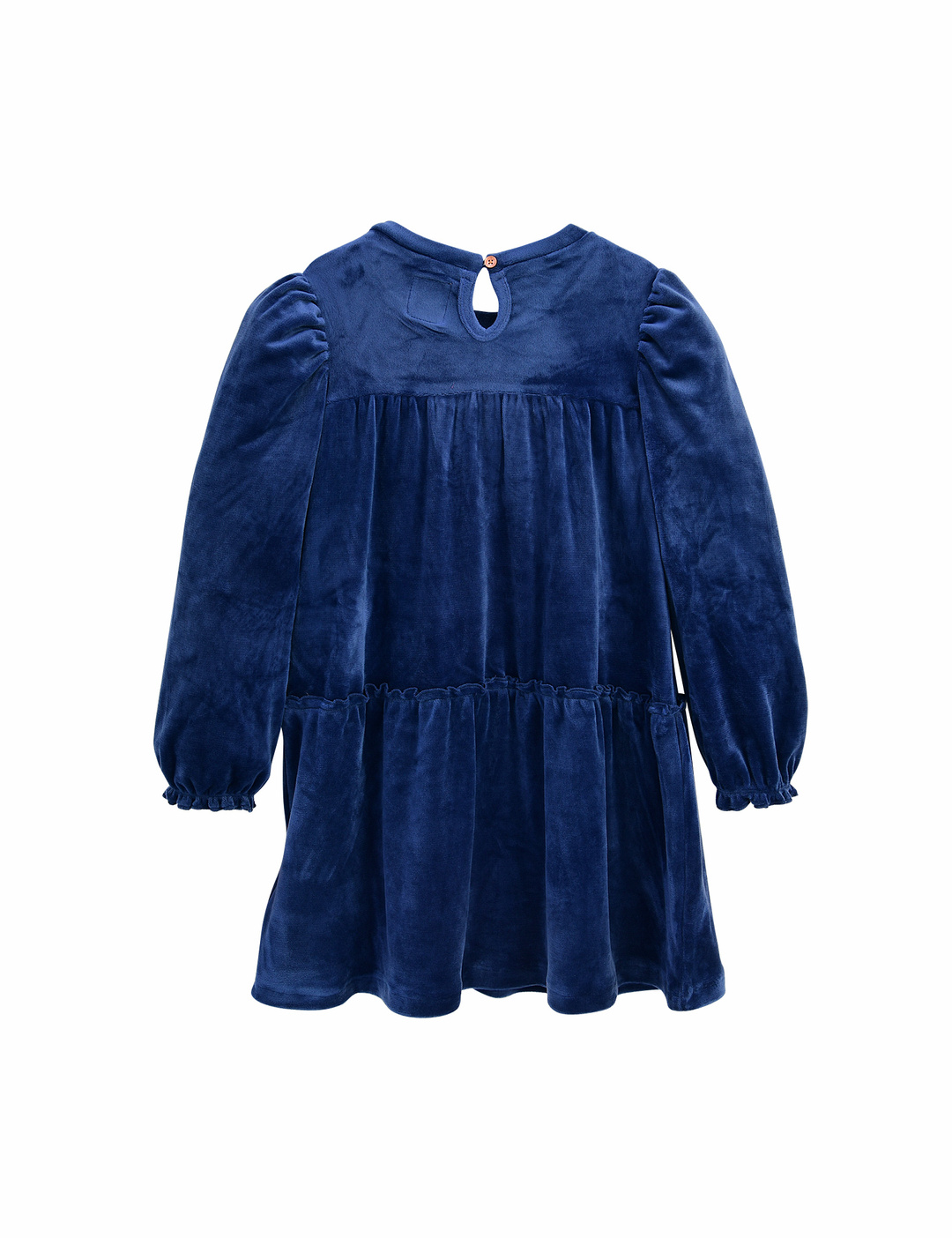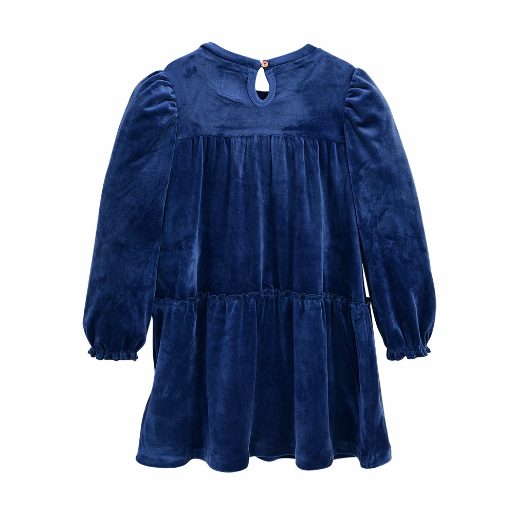신축성 있는 벨벳소재에 루렉스 자수로고가 포인트인 여아 원피스