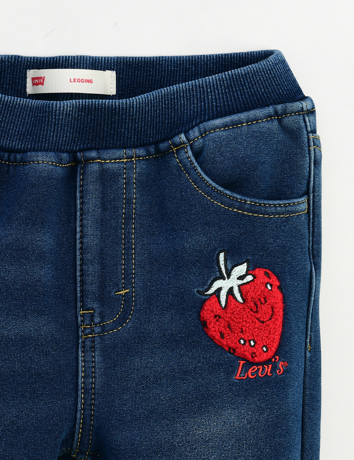 플리스 기모 안감이 들어가 보온성을 높여주고, 스트로베리 자수로포인트를 준 여아 제깅스