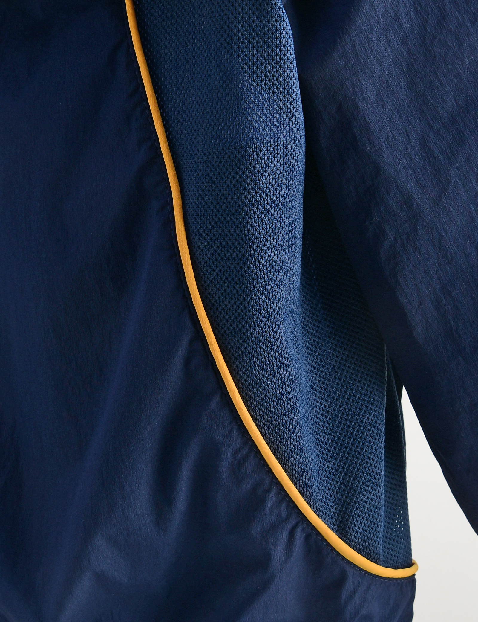활동에 편한 라글란 소매 실루엣에 뒷면 파이핑이 포인트로 들어가있으며, 옆면 메쉬소재로 통기성을 높힌 가벼운 소재의 여름 윈드 자켓