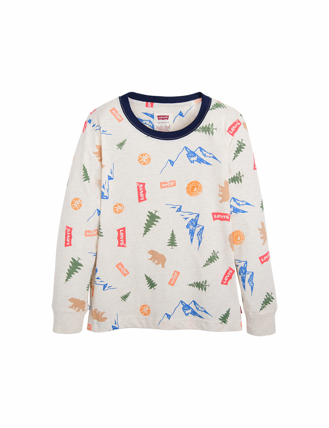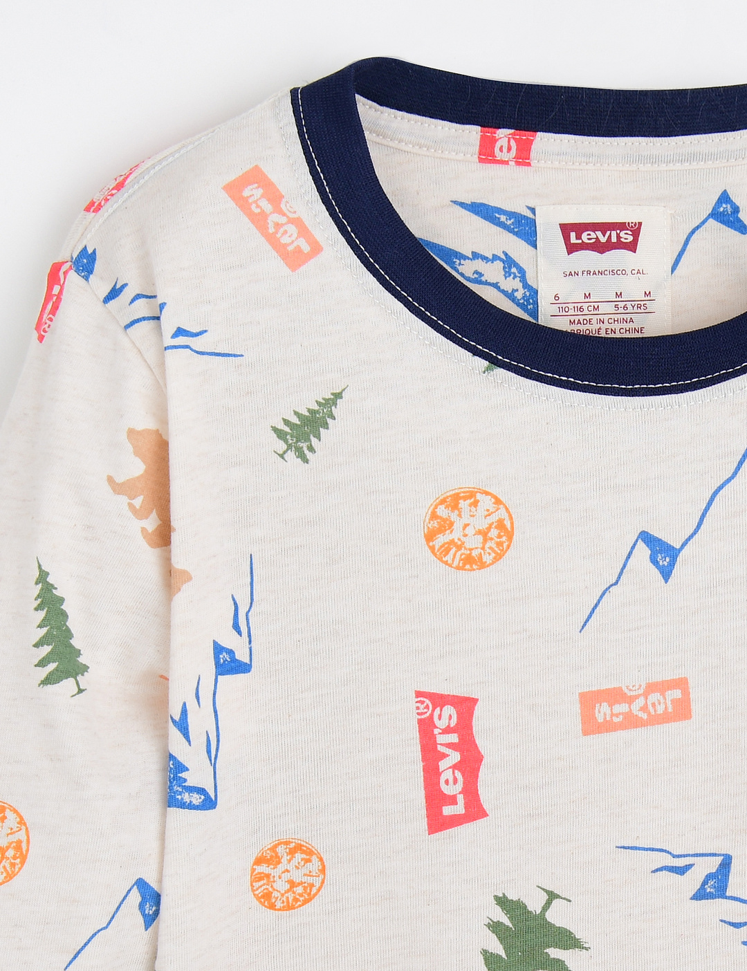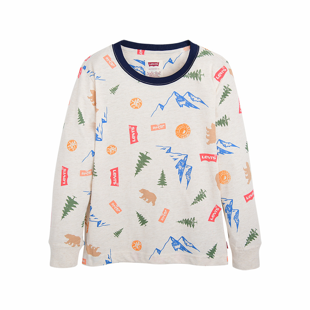 프린트가 들어가 있는 긴팔티셔츠와 오버롤이 세트로 구성된 토들러세트