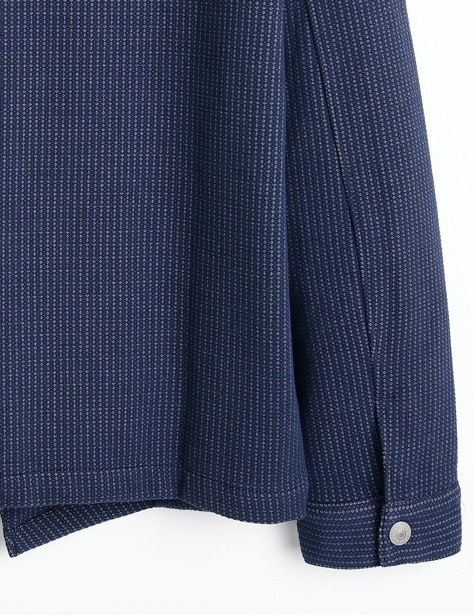 스냅단추로 착용이 편리하며, 가슴에 패치와 언발란스한 앞단 라인이 포인트인 부드러운 소재의 셔츠형 자켓