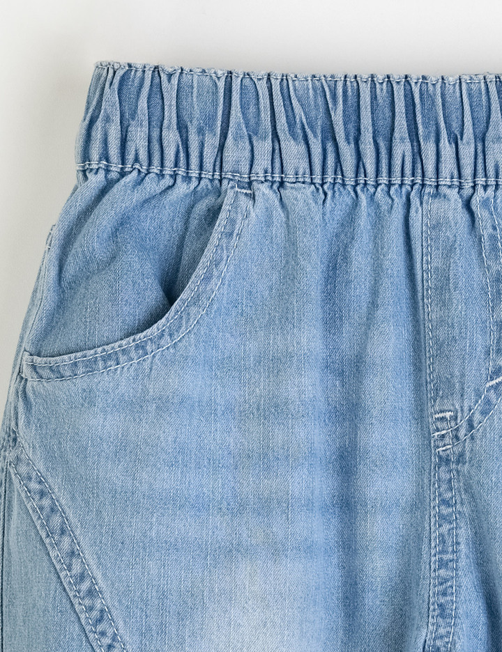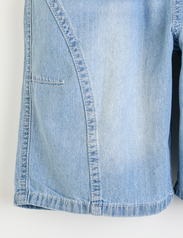 부드러운 면 100% 데님으로 제작된 루즈핏 반바지로, 허리 풀온 사양을 적용해 편안하게 착용할 수 있으며 곡선형 절개 디테일로 활동성을 높였습니다. 다크 컬러는 리액티브 다잉 공법을 적용해 세탁 후에도 컬러 유지력이 뛰어나 여름 데일리 룩에 활용하기 좋은 아이템입니다.