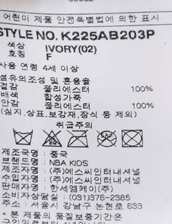 | 품질보증기준 | 세탁 불가 상품입니다.(세탁라벨참고) |