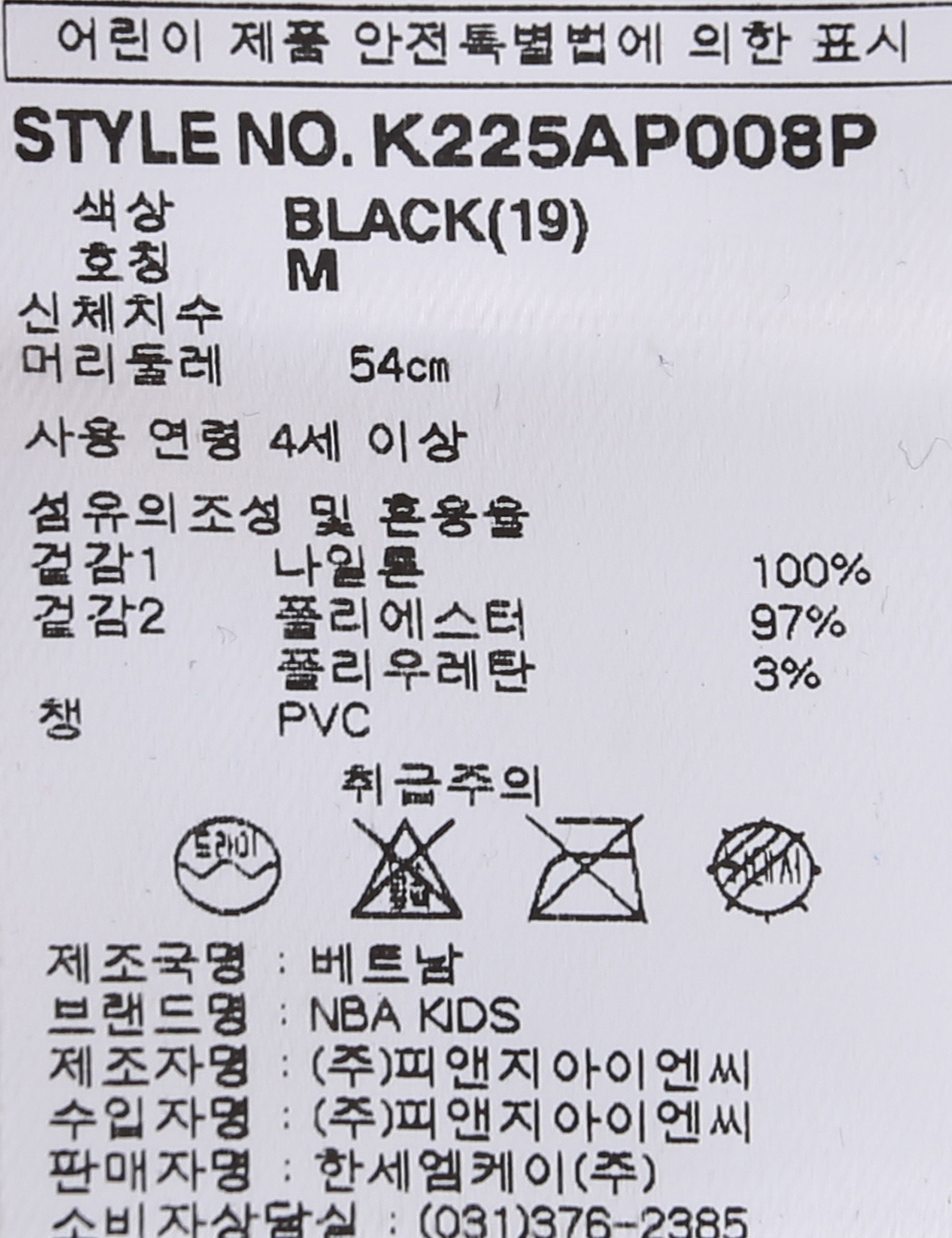 브랜드 홈 바로가기| 제품소재 | [겉감1]나일론100% [겉감2]폴리에스터97% 폴리우레탄3% [챙]PVC |