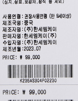 해당 인증정보는 판매자가 등록한 것으로 등록정보에 대한 일체의 책임은 판매자에게 있습니다.
