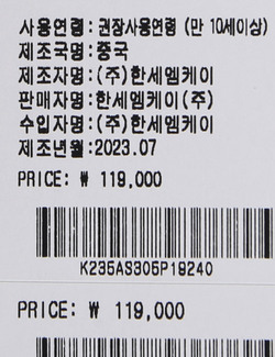 해당 인증정보는 판매자가 등록한 것으로 등록정보에 대한 일체의 책임은 판매자에게 있습니다.
