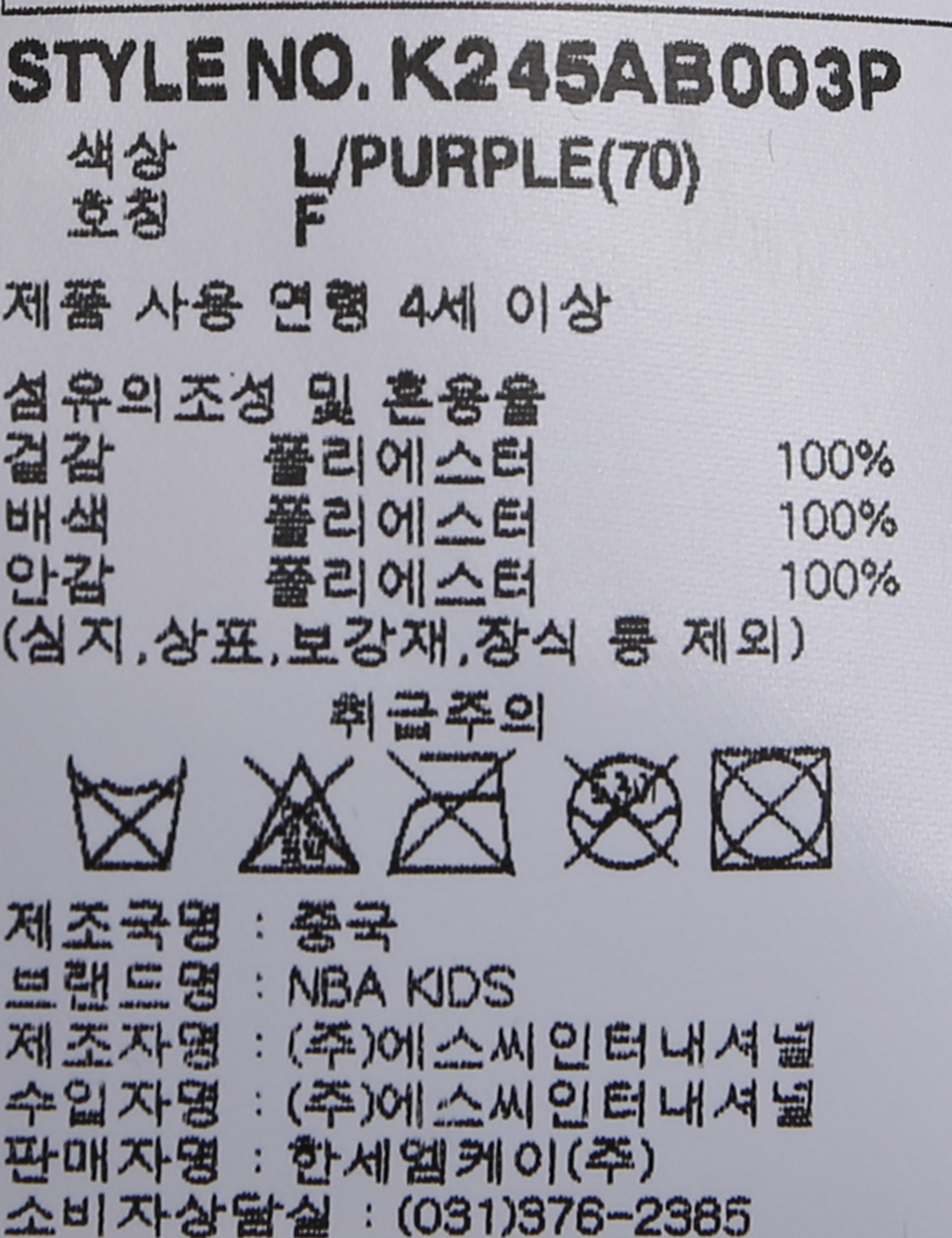 | 브랜드 | NBA KIDS |
