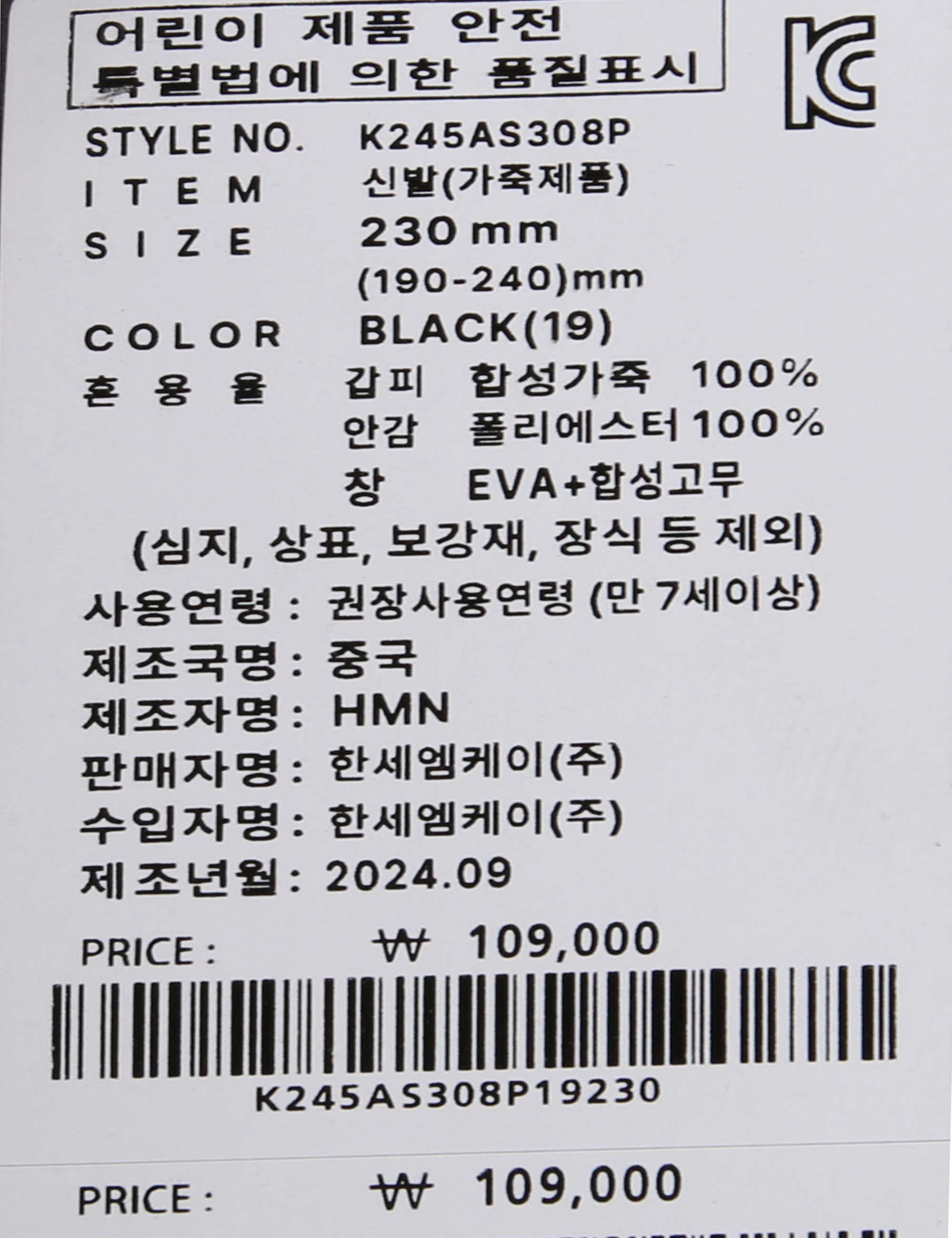 | 상품코드 | K245AS308P |
