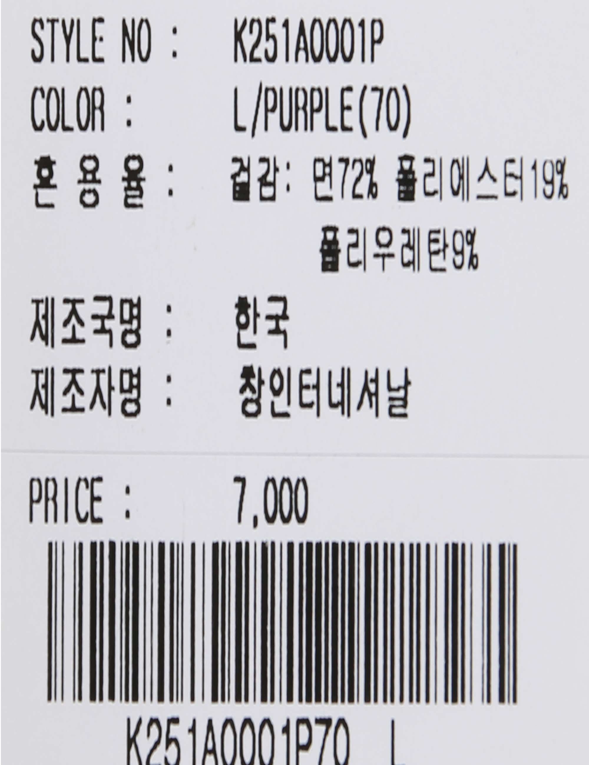 상품코드 K251AO001P