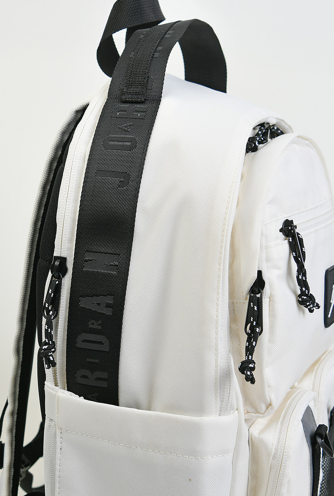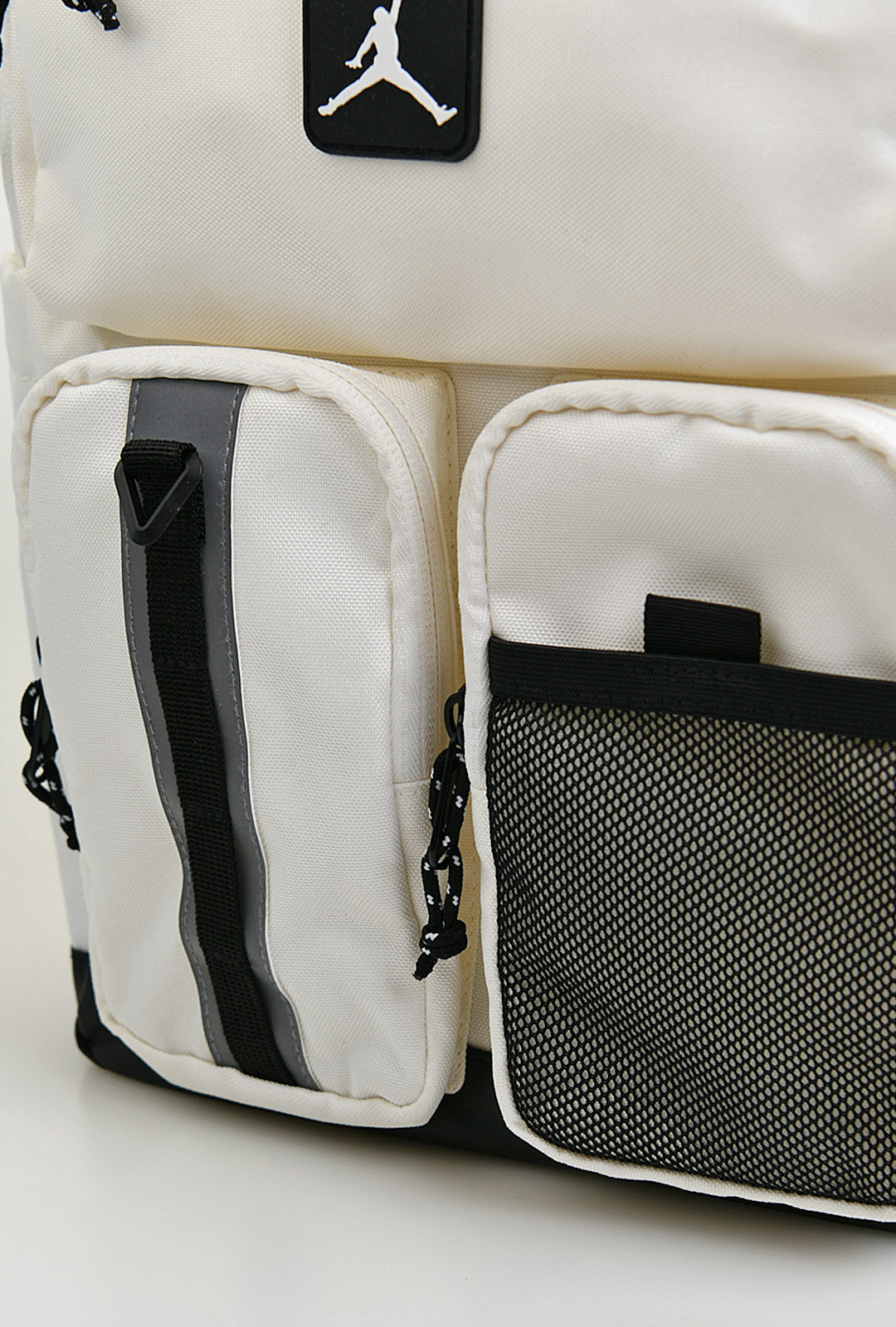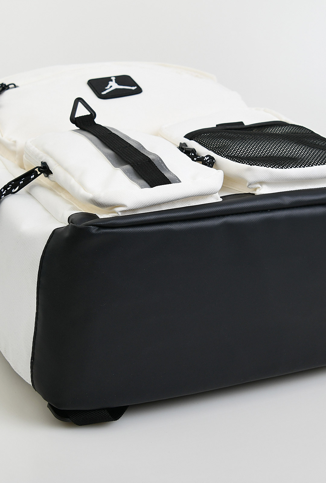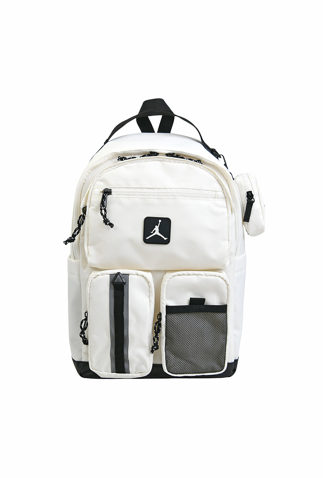 A. 메인/서브 포켓에 지퍼가 다수 적용된 형태, 세부 포켓 위치는 상세 이미지 기준 확인 권장