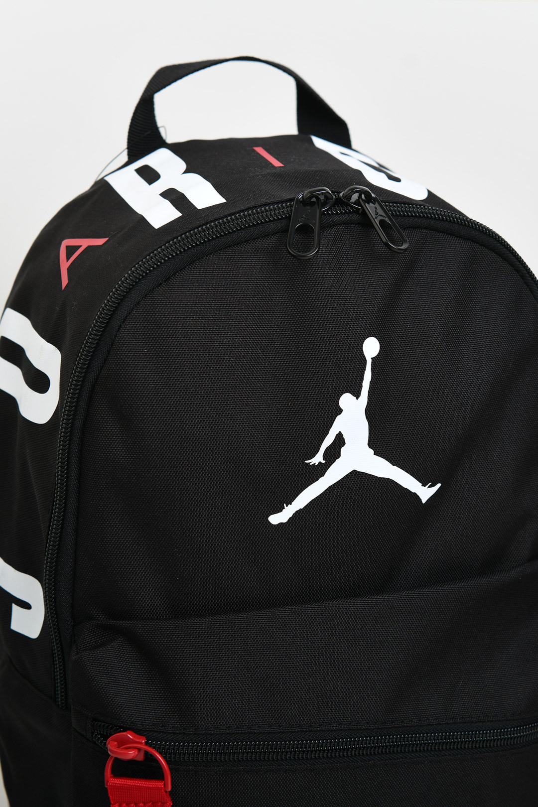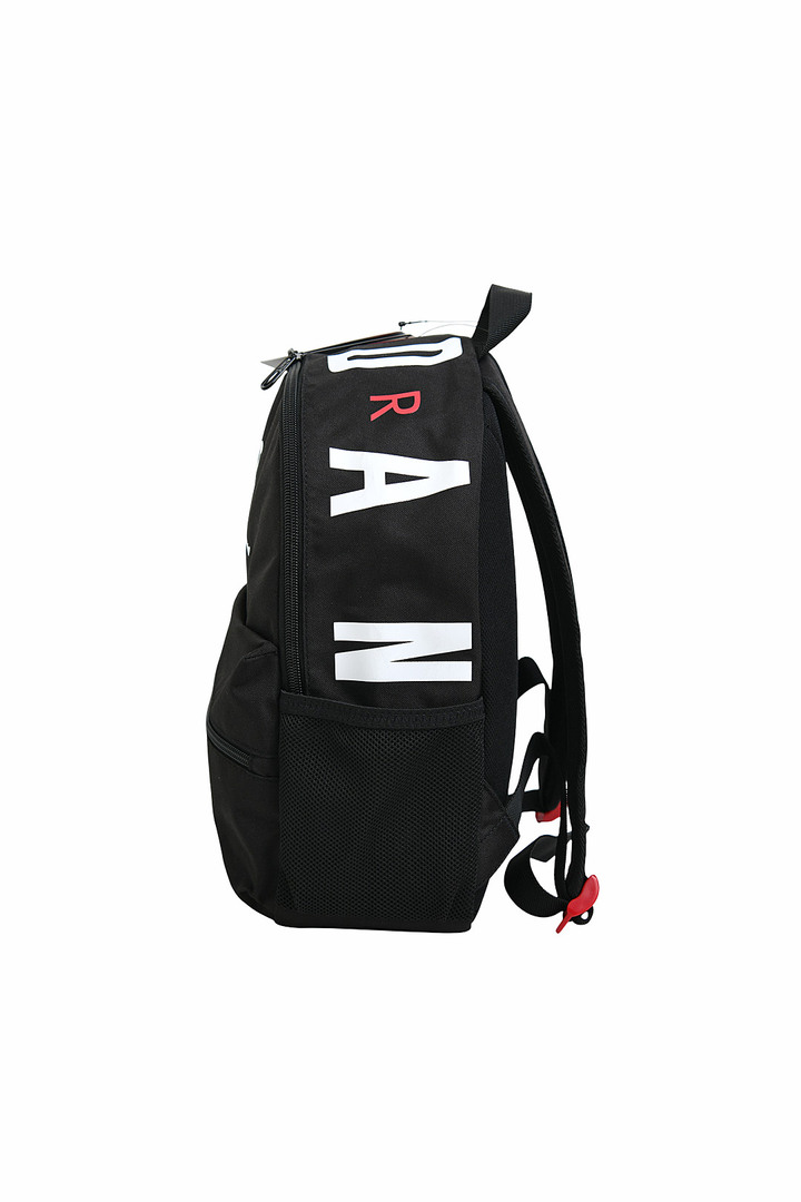 메인 수납 공간과 포켓 구성으로 분리 수납 가능 점프맨 로고가 전면에 배치된 디자인 키체인 부분 조던 레터링이 포인트를 더함 가볍게 멜 수 있는 미니 백팩 형태