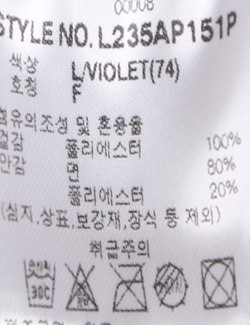 브랜드 홈 바로가기| 제품소재 | [겉감]폴리에스터100% [안감]폴리에스터80% 면20% |