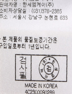 | 취급시 주의사항 | 본 제품은 손세탁 하십시오.(케어라벨참고) |