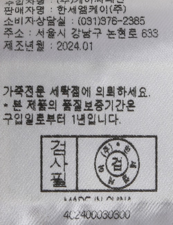 | 취급시 주의사항 | 물에 젖었을 때 직사광선이나 열로 직접 건조하여 변질될 수 있으니 통풍이 잘되는 그늘에서 건조하십시오. (취급상 주의사항 참고) |
