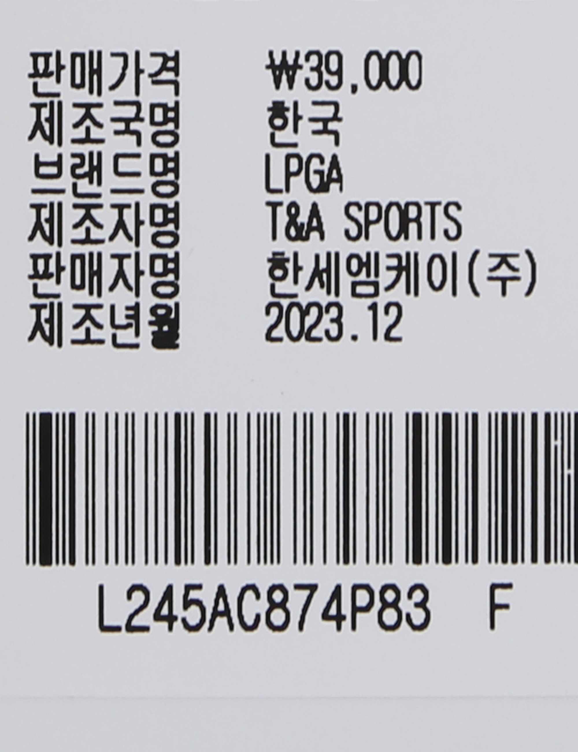 | 상품코드 | L245AC874P |