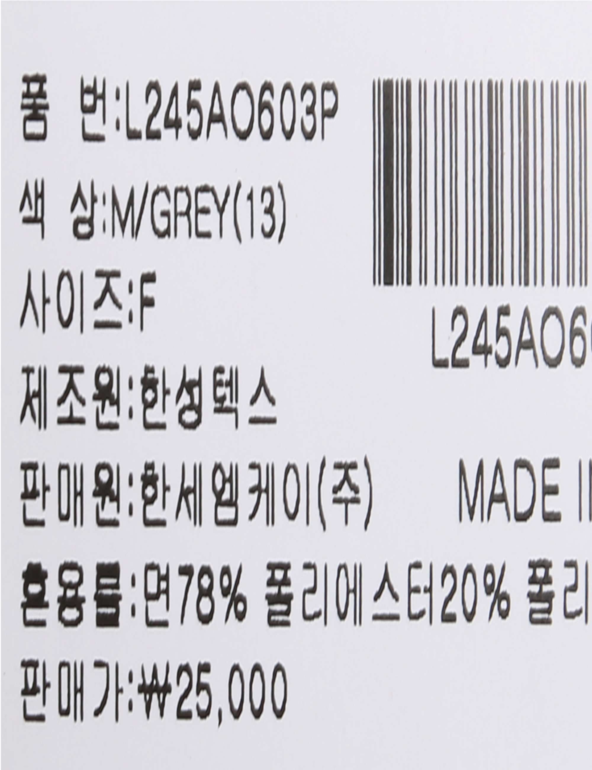 | 상품코드 | L245AO603P |