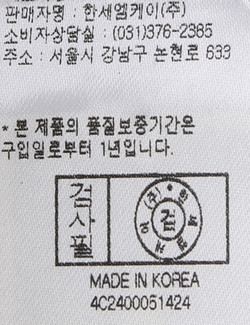 | 취급시 주의사항 | 본 제품은 손세탁 하십시오.(케어라벨참고) |