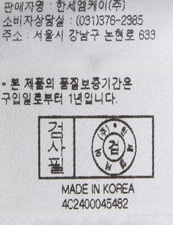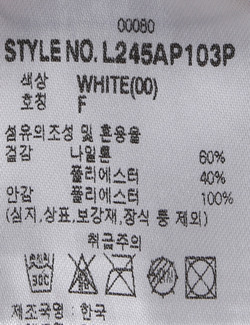 | 취급시 주의사항 | 본 제품은 손세탁 하십시오.(케어라벨참고) |