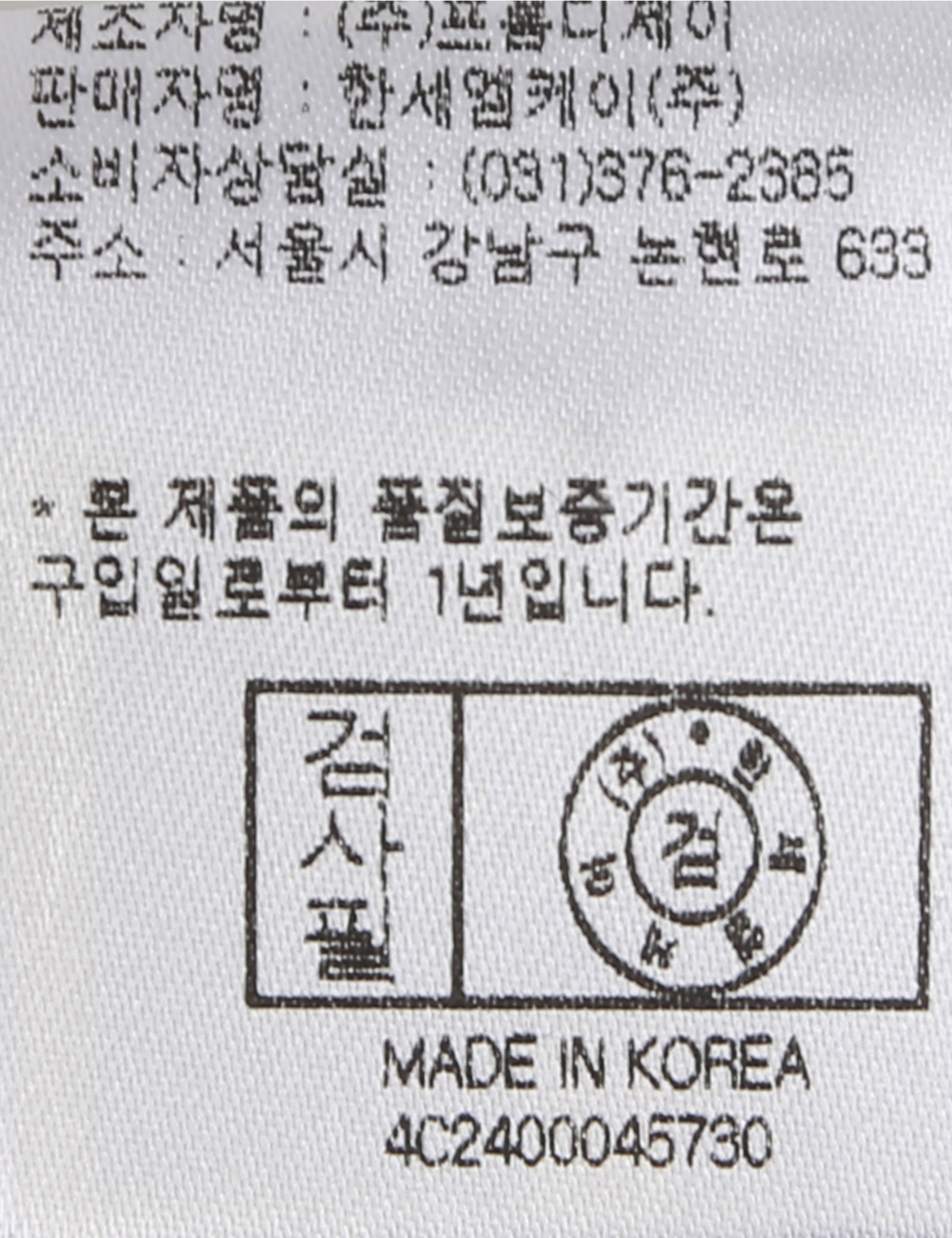 | 취급시 주의사항 | 본 제품은 손세탁 하십시오.(케어라벨참고) |