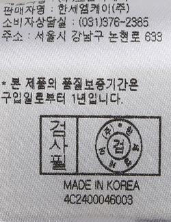 | 취급시 주의사항 | 본 제품은 손세탁 하십시오.(케어라벨참고) |