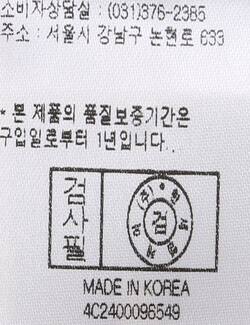 | 취급시 주의사항 | 본 제품은 손세탁 하십시오.(케어라벨참고) |