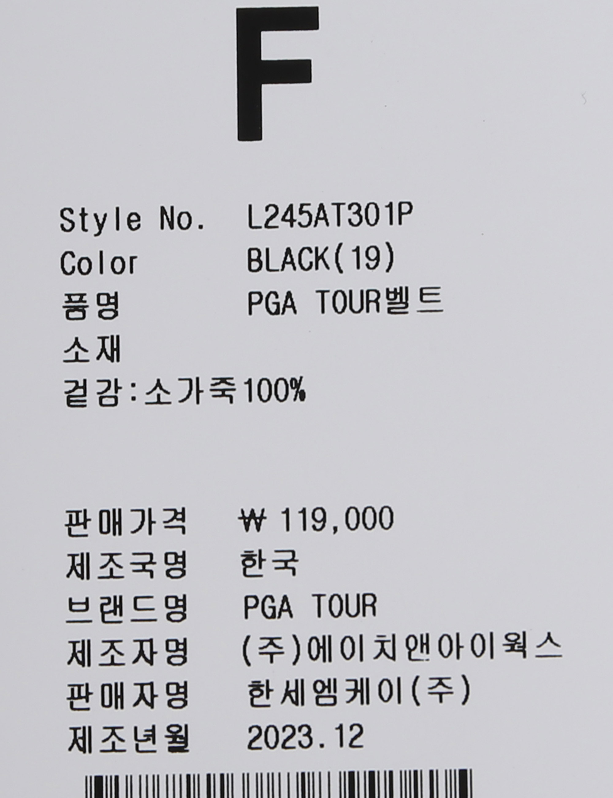 | 상품명 | 남성 로고 포인트 벨트(L245AT301P) |