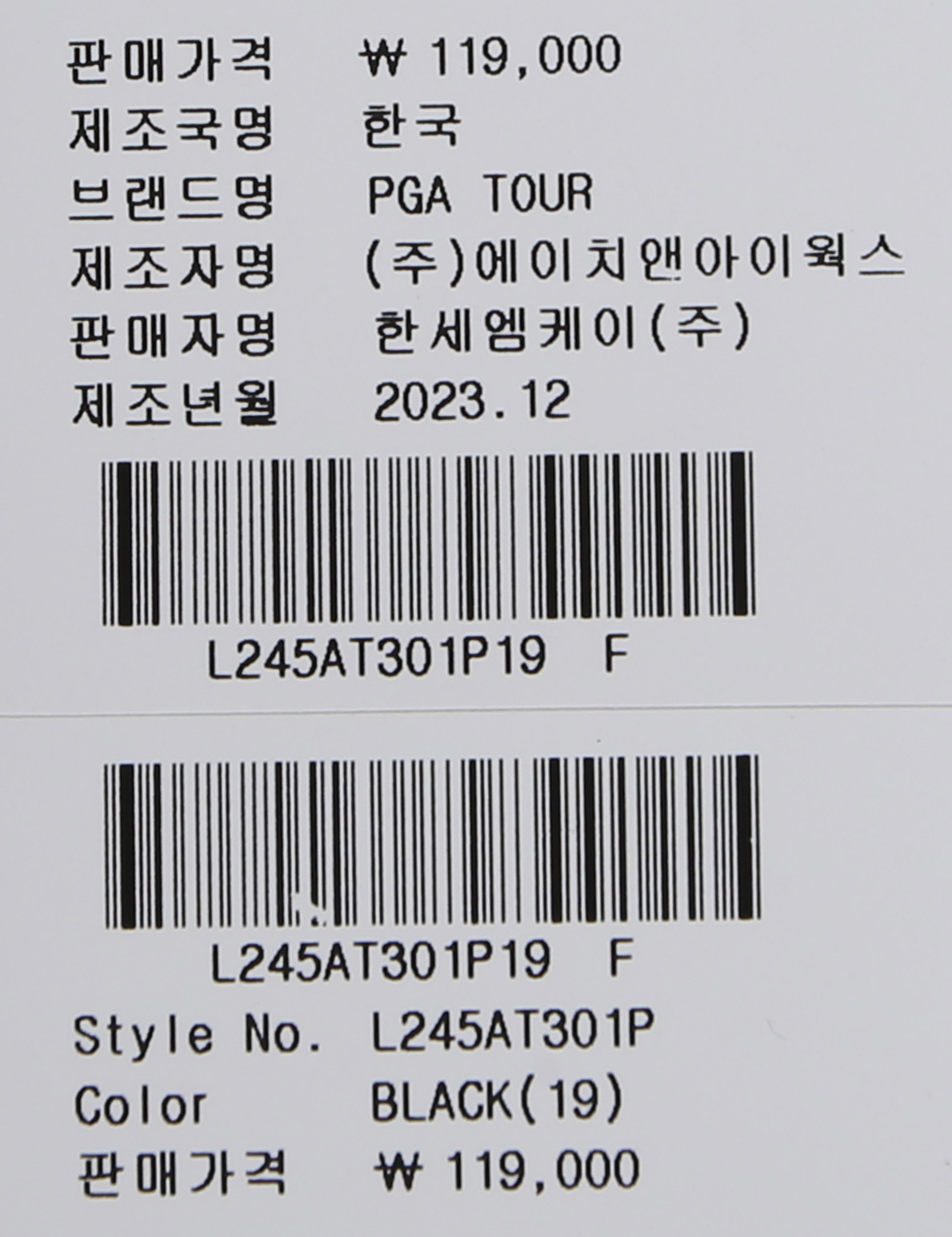 | 상품코드 | L245AT301P |