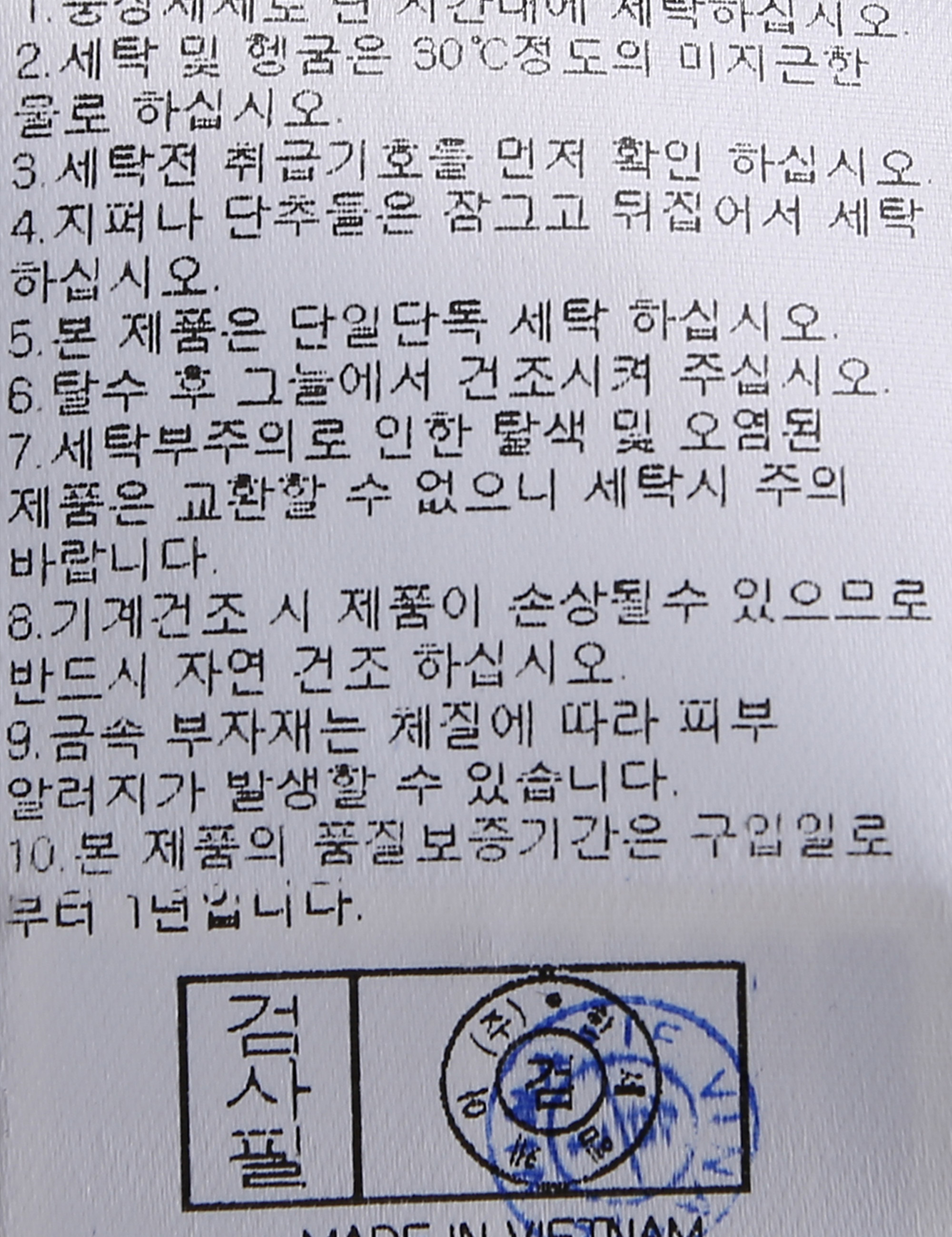 | 세탁방법 및 취급시 주의사항 | 본 제품은 손세탁 하십시오.(케어라벨참고) |