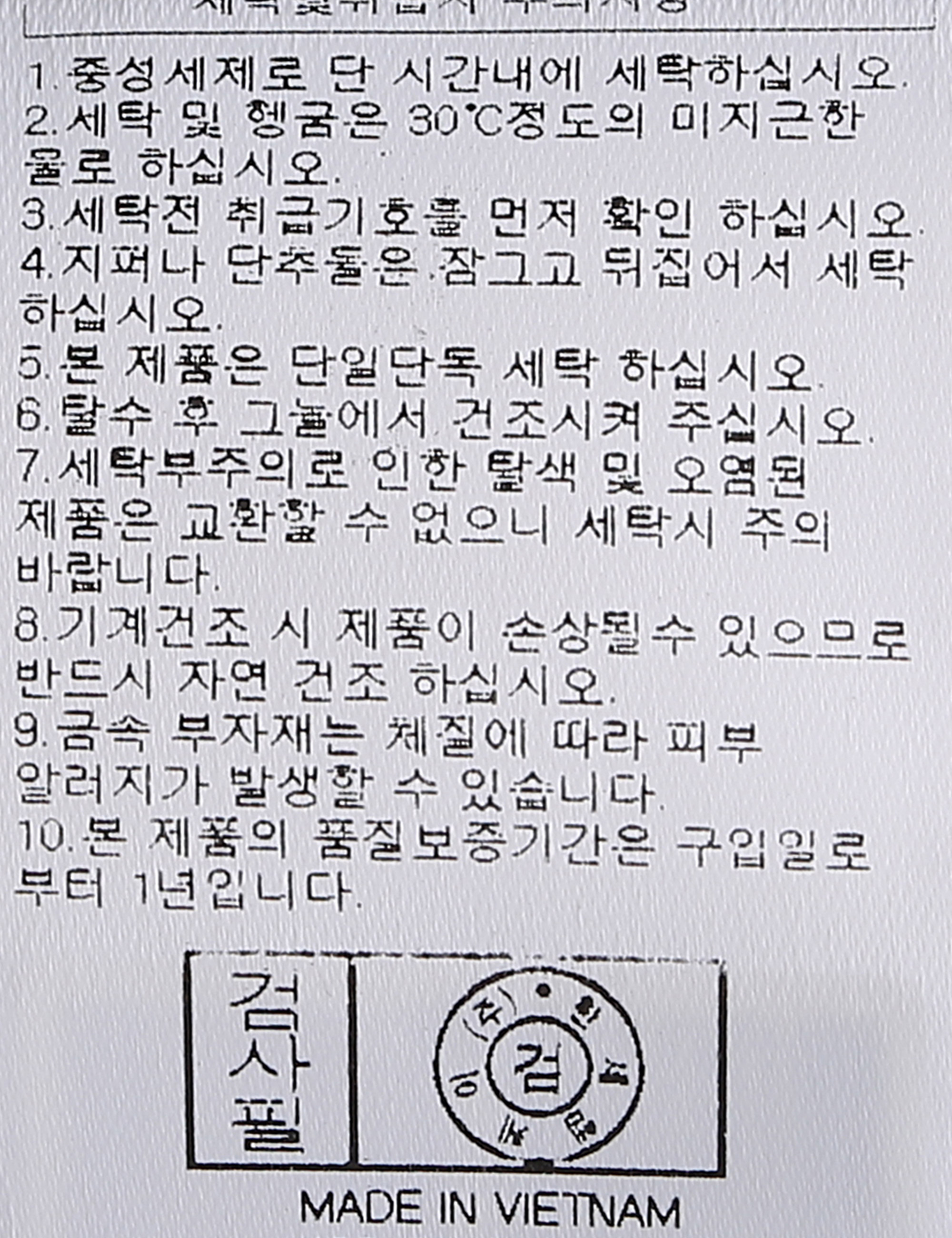 | 세탁방법 및 취급시 주의사항 | 본 제품은 손세탁 하십시오.(케어라벨참고) |