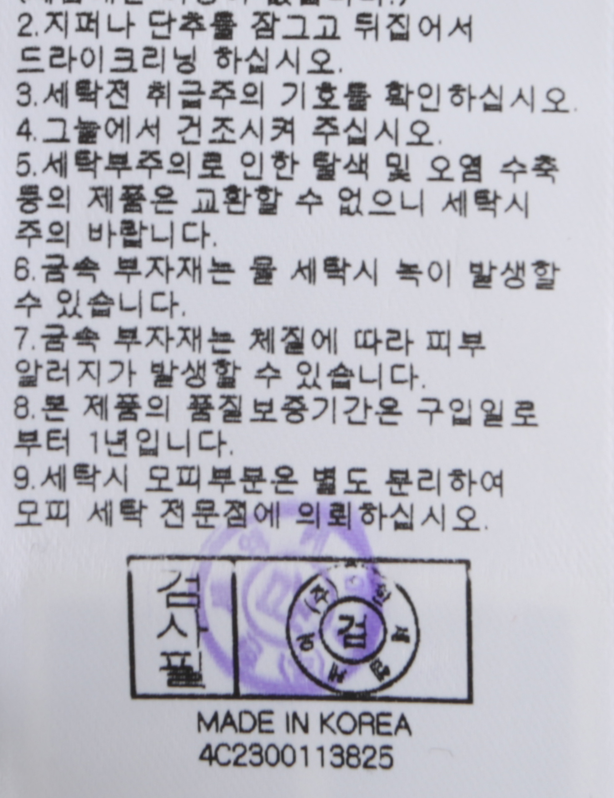 | 세탁방법 및 취급시 주의사항 | 본 제품은 반드시 드라이크리닝 하십시오.(세탁라벨참고) |