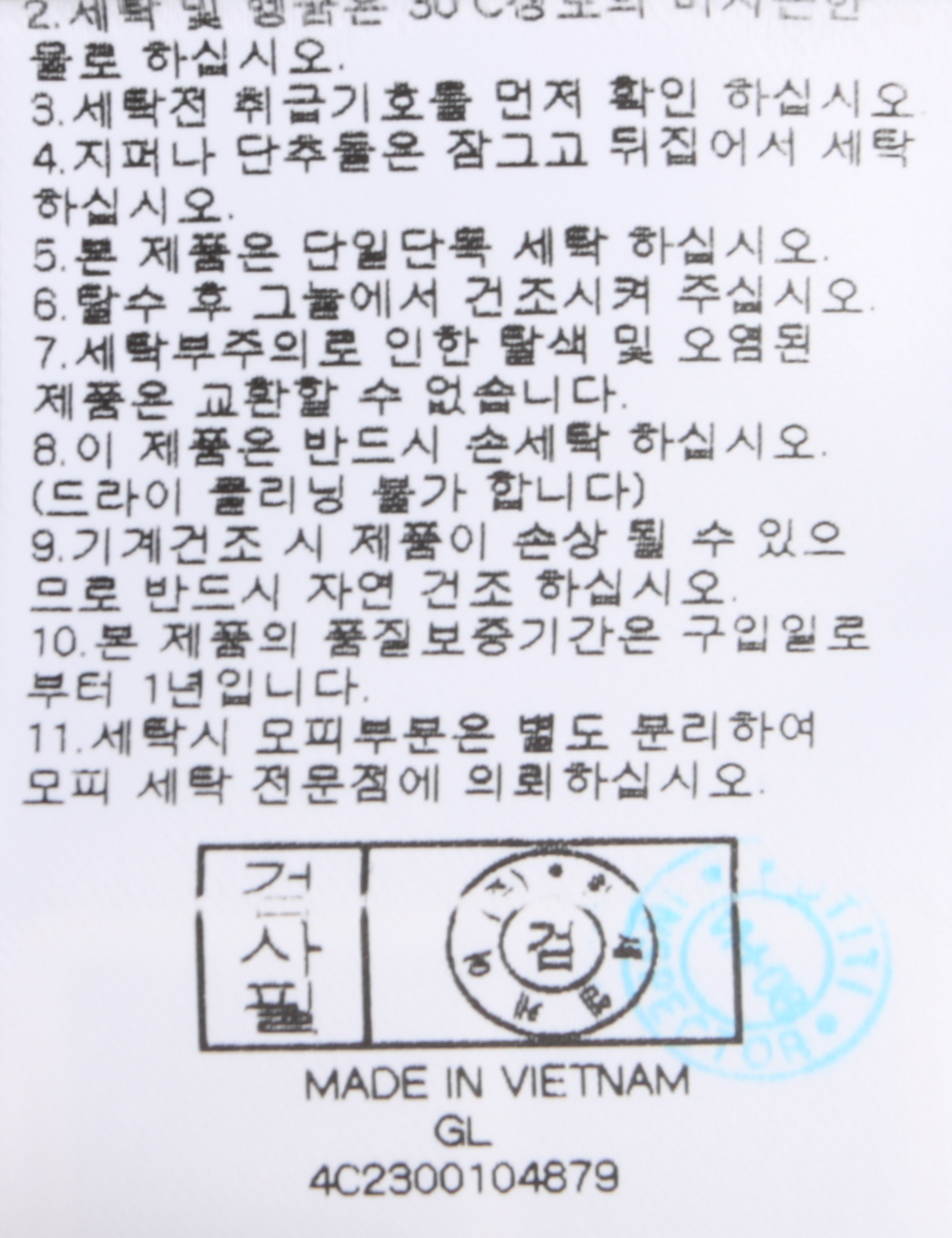 세탁방법 및 취급시 주의사항 본 제품은 손세탁 하십시오.(케어라벨참고)