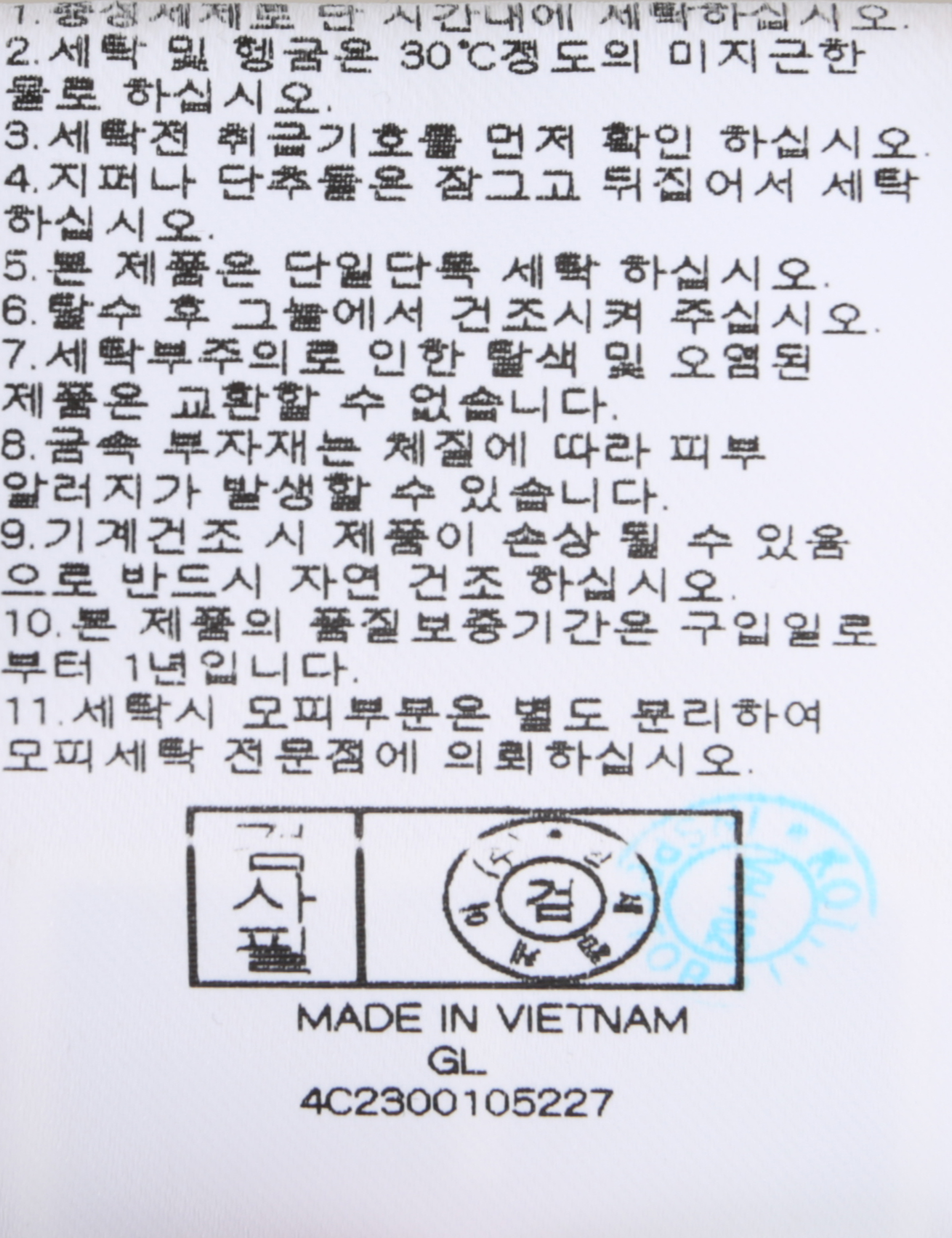 세탁방법 및 취급시 주의사항 본 제품은 손세탁 하십시오.(케어라벨참고)
