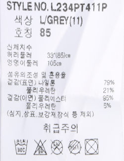 제품소재 [겉감(표면)]나일론79% 폴리우레탄21% [겉감(이면)]폴리에스터95% 폴리우레탄5%