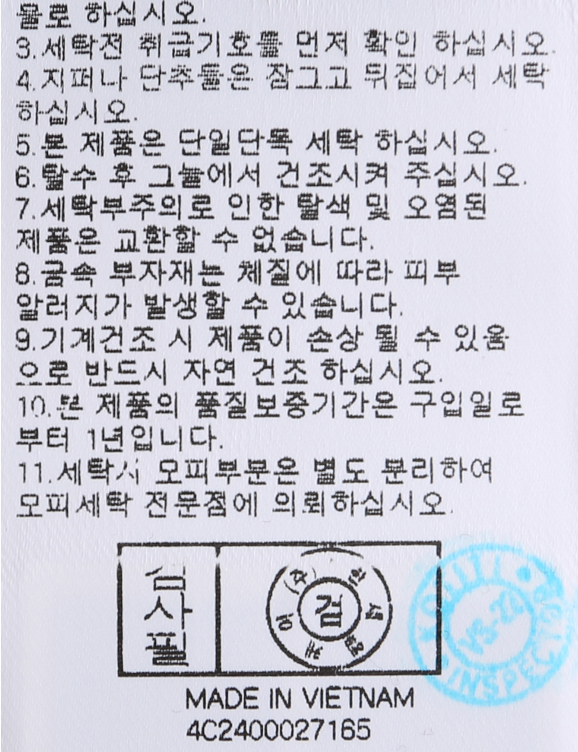 세탁방법 및 취급시 주의사항 본 제품은 손세탁 하십시오.(케어라벨참고)