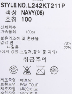 | 세탁방법 및 취급시 주의사항 | 본 제품은 반드시 드라이크리닝 하십시오.(세탁라벨참고) |