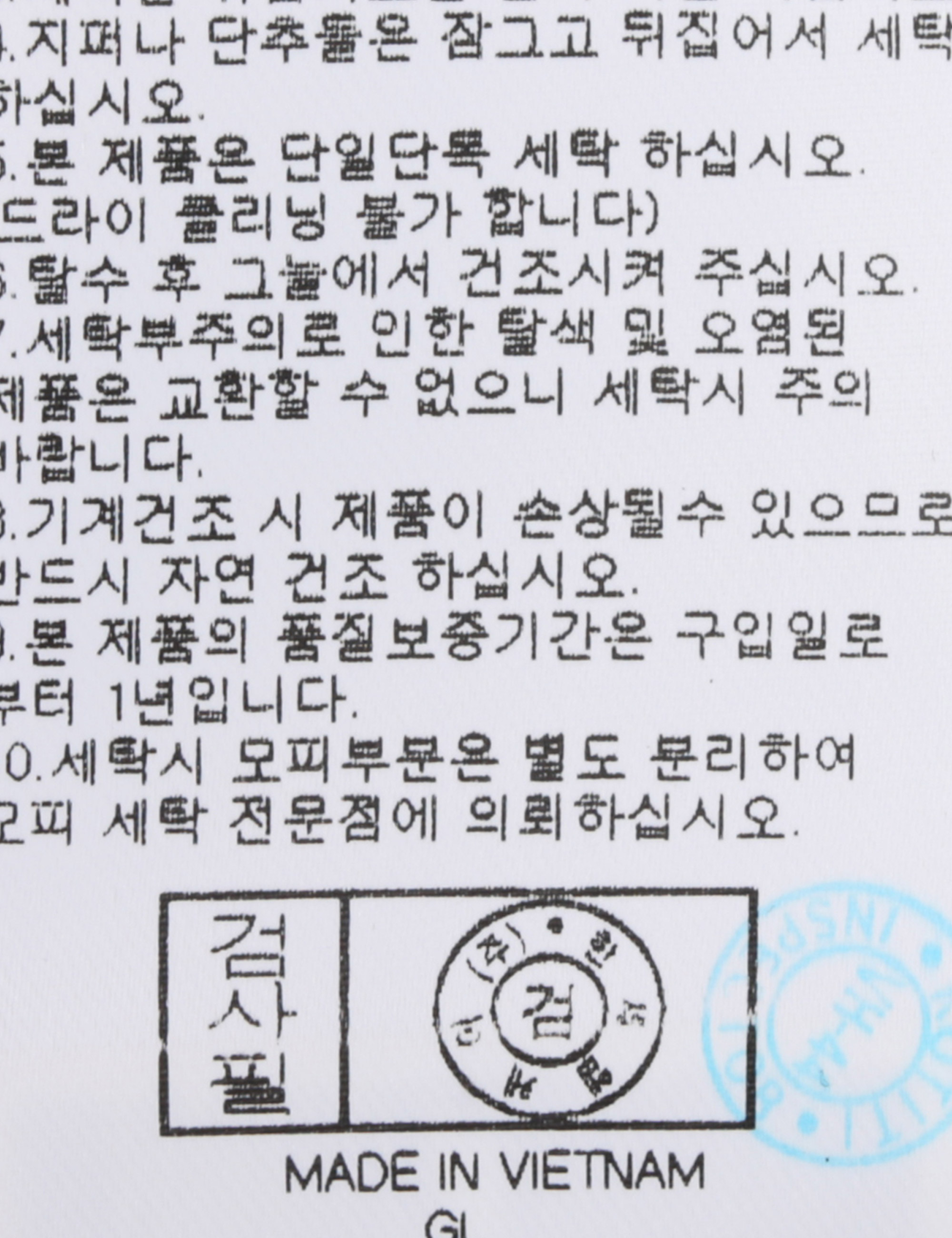 | 세탁방법 및 취급시 주의사항 | 중성세제로 단 시간내에 세탁하십시오.(케어라벨참고) |