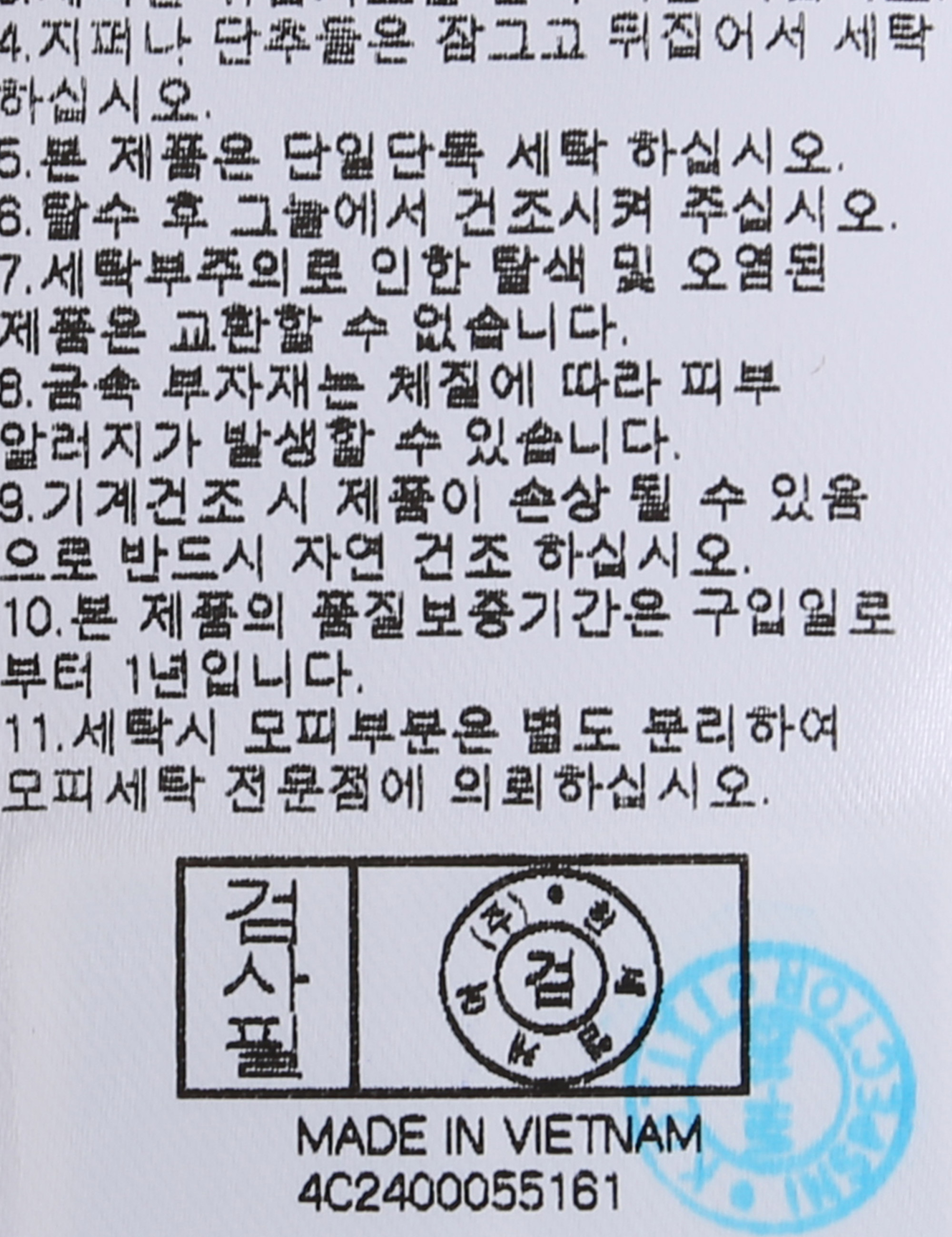 | 세탁방법 및 취급시 주의사항 | 본 제품은 손세탁 하십시오.(케어라벨참고) |